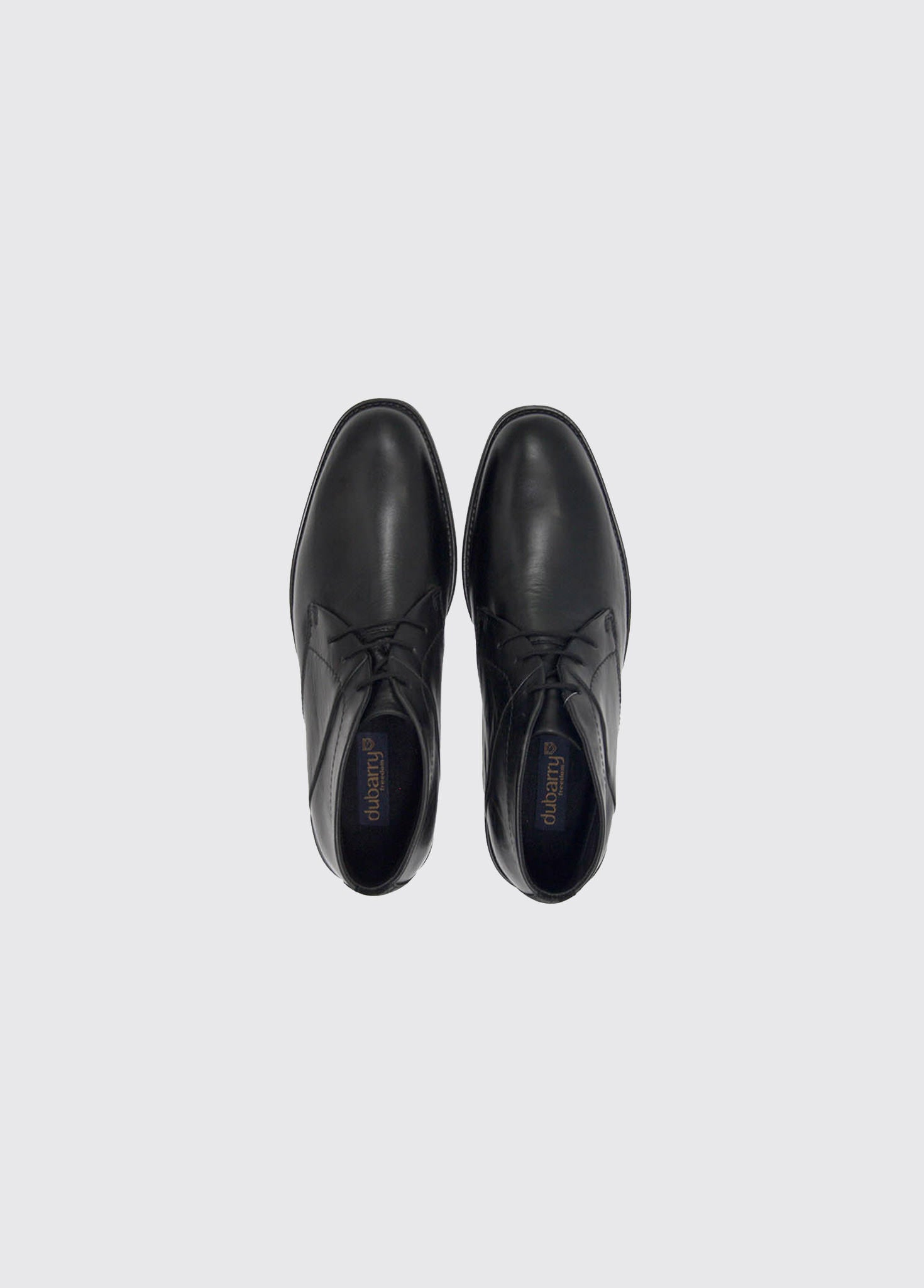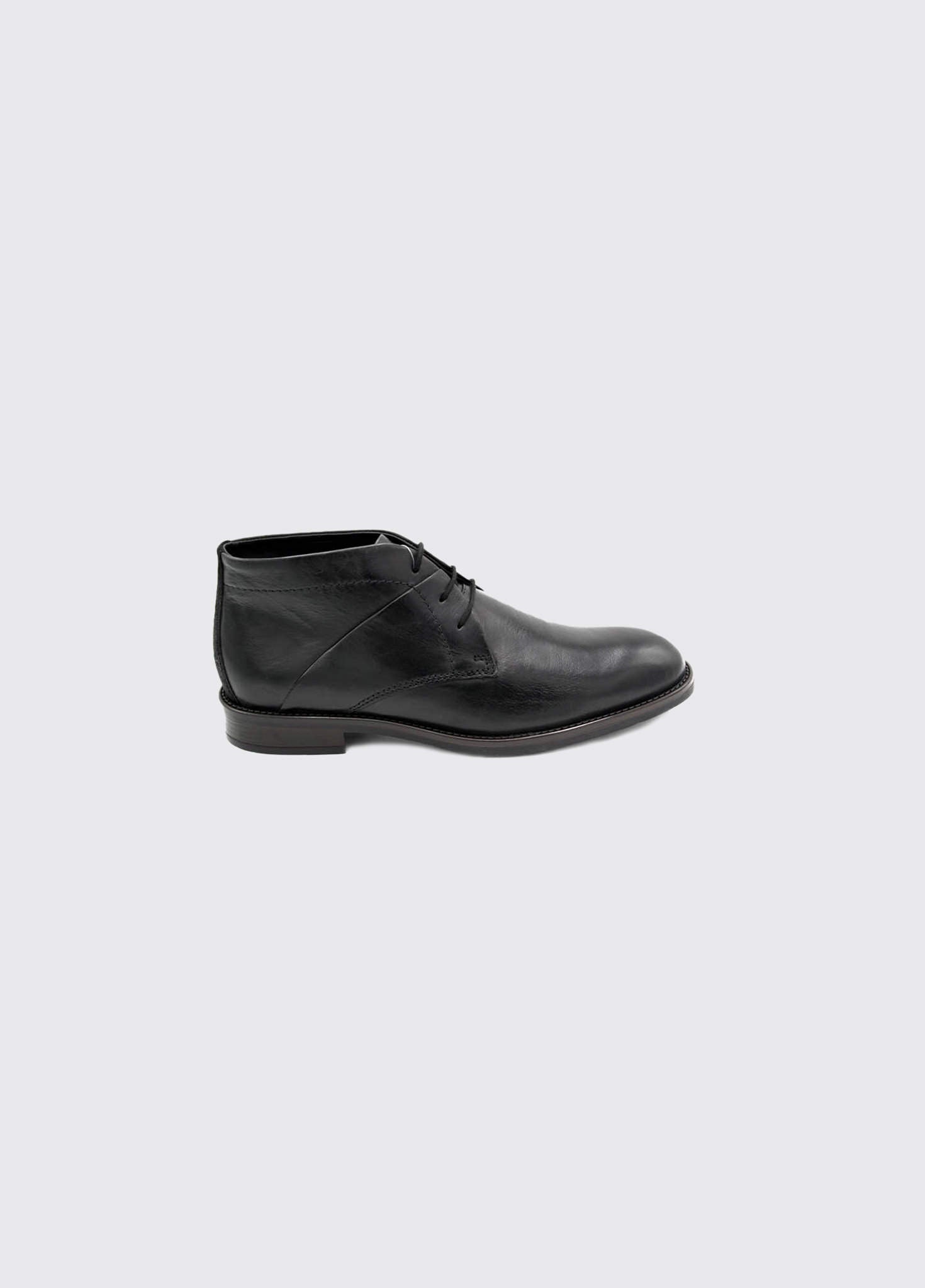 The Steve Men's Lace-Up Shoe in black features a traditional three-eyelet tie and classic chukka boot styling. Crafted with a durable leather upper and a sturdy TPR sole unit, this lace-up boot combines long-lasting wear with timeless appeal. Thanks to their clean, versatile design, chukka boots are perfect for smart-casual settings, relaxed office dress codes, and effortless weekend outings.