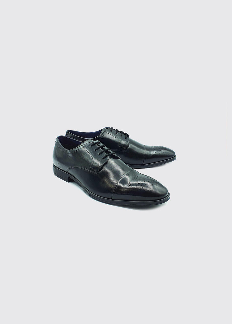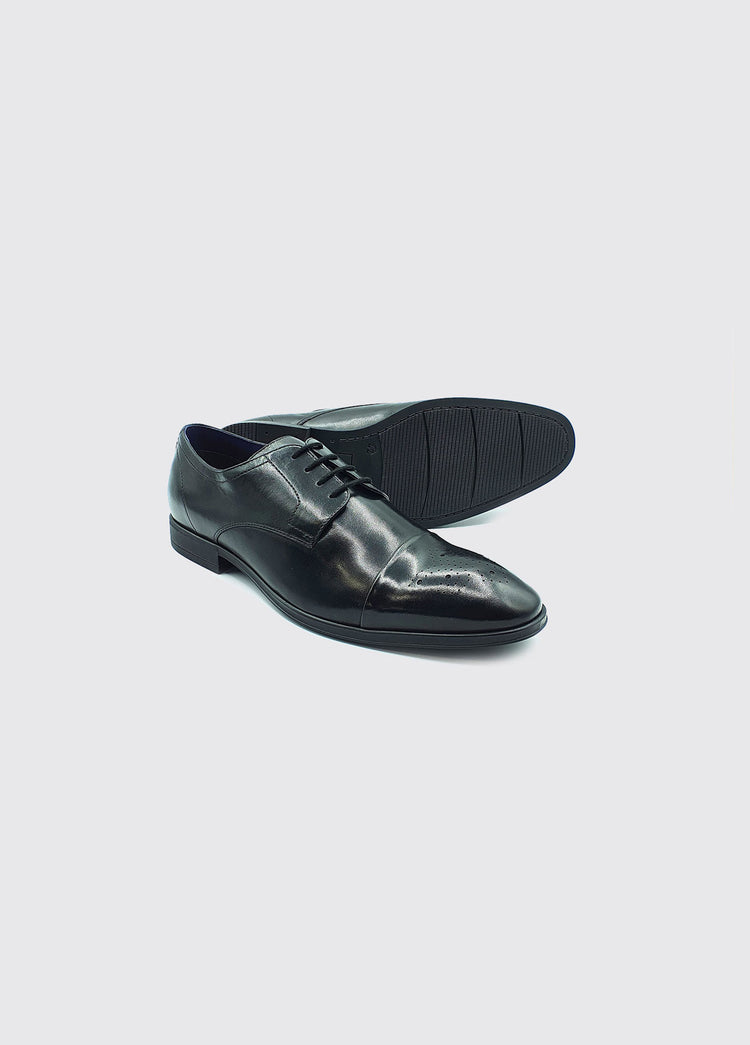 The Dan Derby Style Lace-Up Shoe in Black boasts a classic toe ca