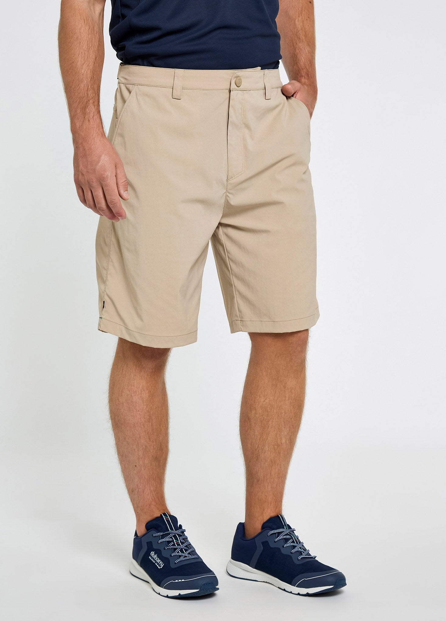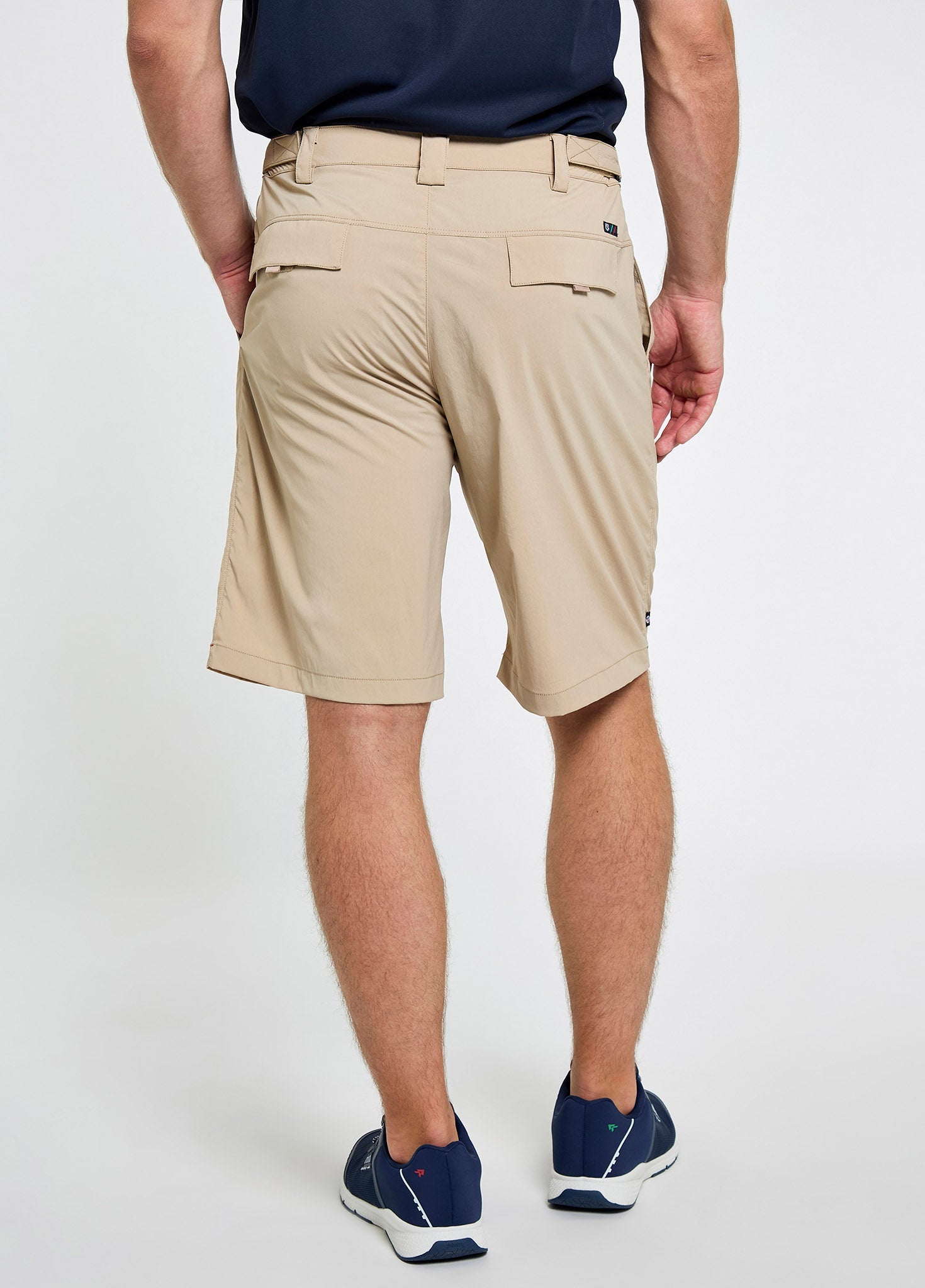 The classic style of our latest men’s crew shorts design is ideal for both on-the-water and après-sail wear. The lightweight technical fabric has four-way stretch built in to provide comfort and complete freedom of movement in active sailing manoeuvres. You won’t be slowed down, for example, when scrambling across the boat during tacks. The quick-drying, machine washable fabric also has moisture wicking properties and a UPF-50 treatment protects you from sun exposure, so these practical shorts are perfect for summer regattas or long-range cruising wear. Adjustable waist tabs ensure a precise fit, there’s a handy phone pocket as well as the two front pockets, and a useful eyewear cleaning cloth on a bungee cord.