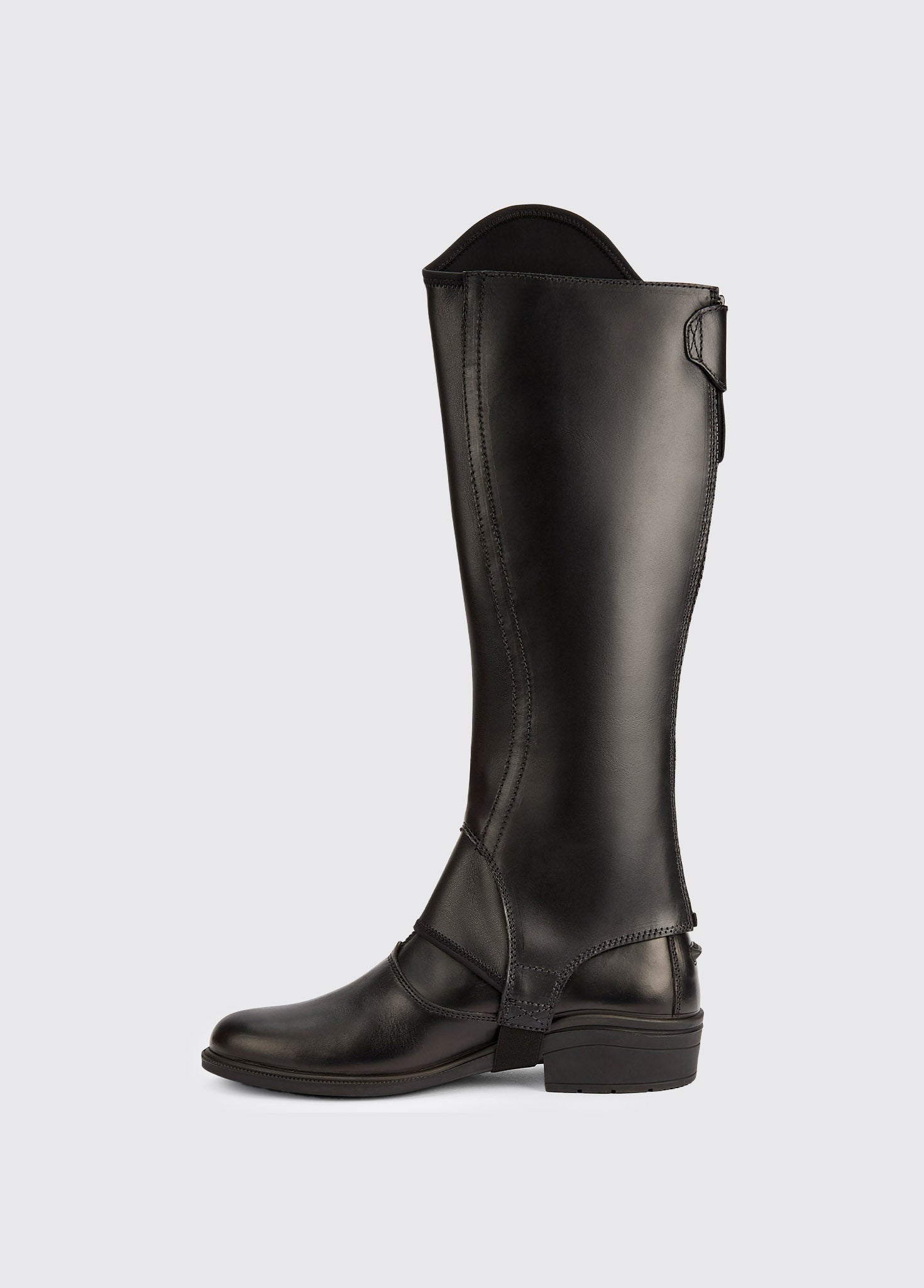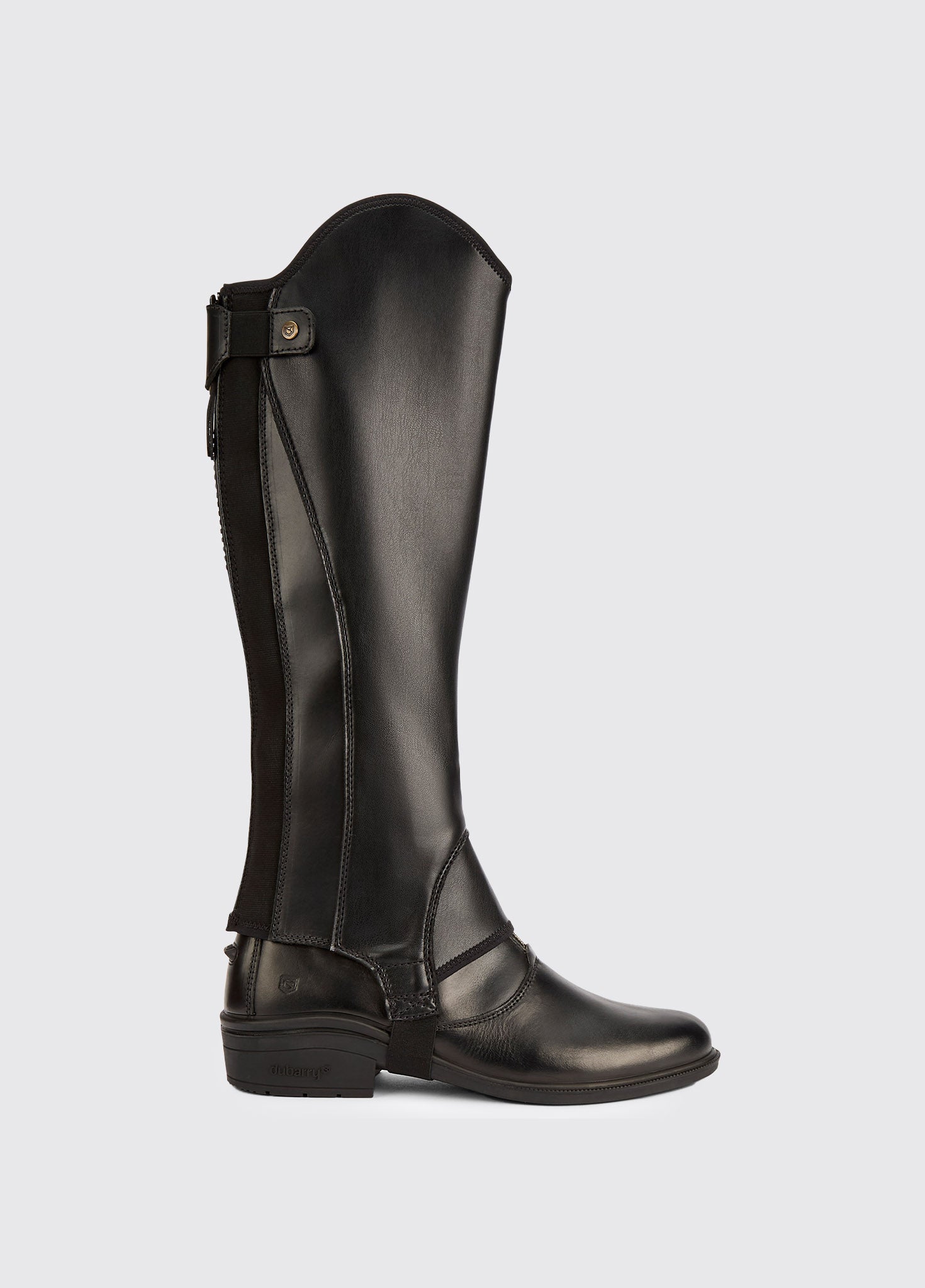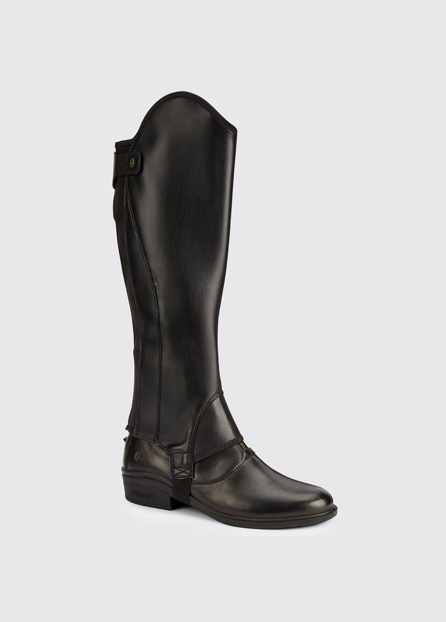The Dubarry half chaps are made with the highest quality full grain leather, incorporating a full-length lateral stretch panel for a snug fit and an elasticated stirrup to pair perfectly with the Punchestown paddock boot.
