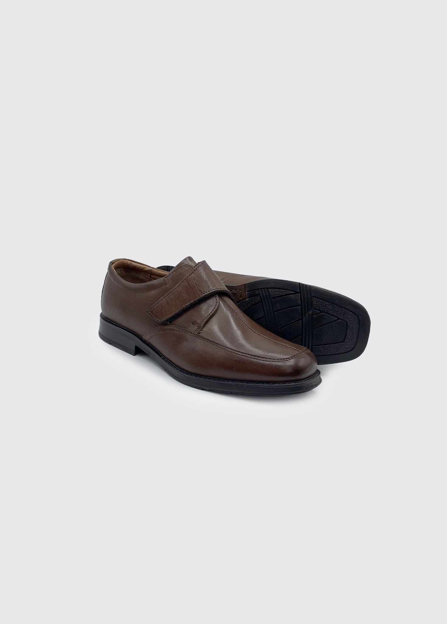 The Gerald Velcro Shoe in chestnut offers a comfortable walking with its stylish design and TPR sole unit. Plus, the leather lining and upper provide added comfort and durability. Say goodbye to laces and hello to the convenient velcro strap.