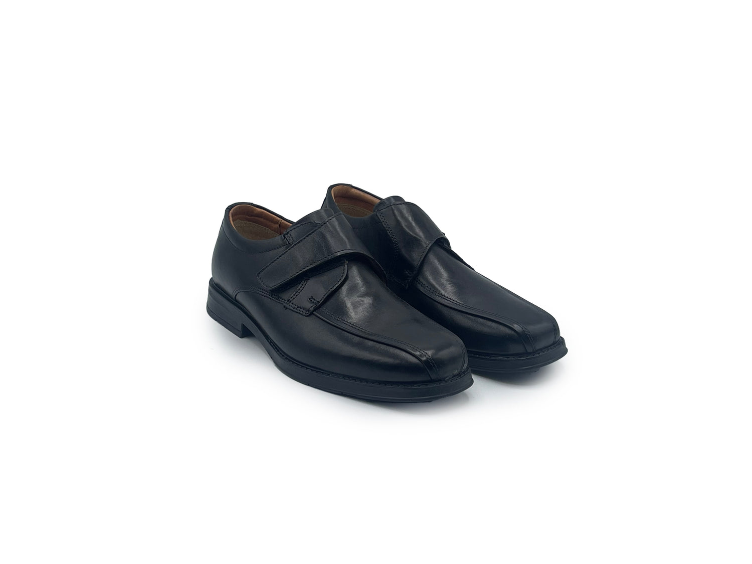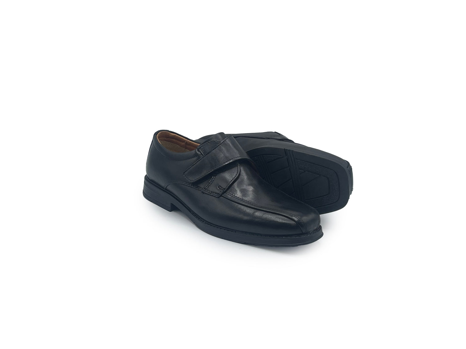The Gerard Velcro Shoe in Black offers a comfortable walking with its stylish design and TPR sole unit. Plus, the leather lining and upper provide added comfort and durability. Say goodbye to laces and hello to the convenient velcro strap.