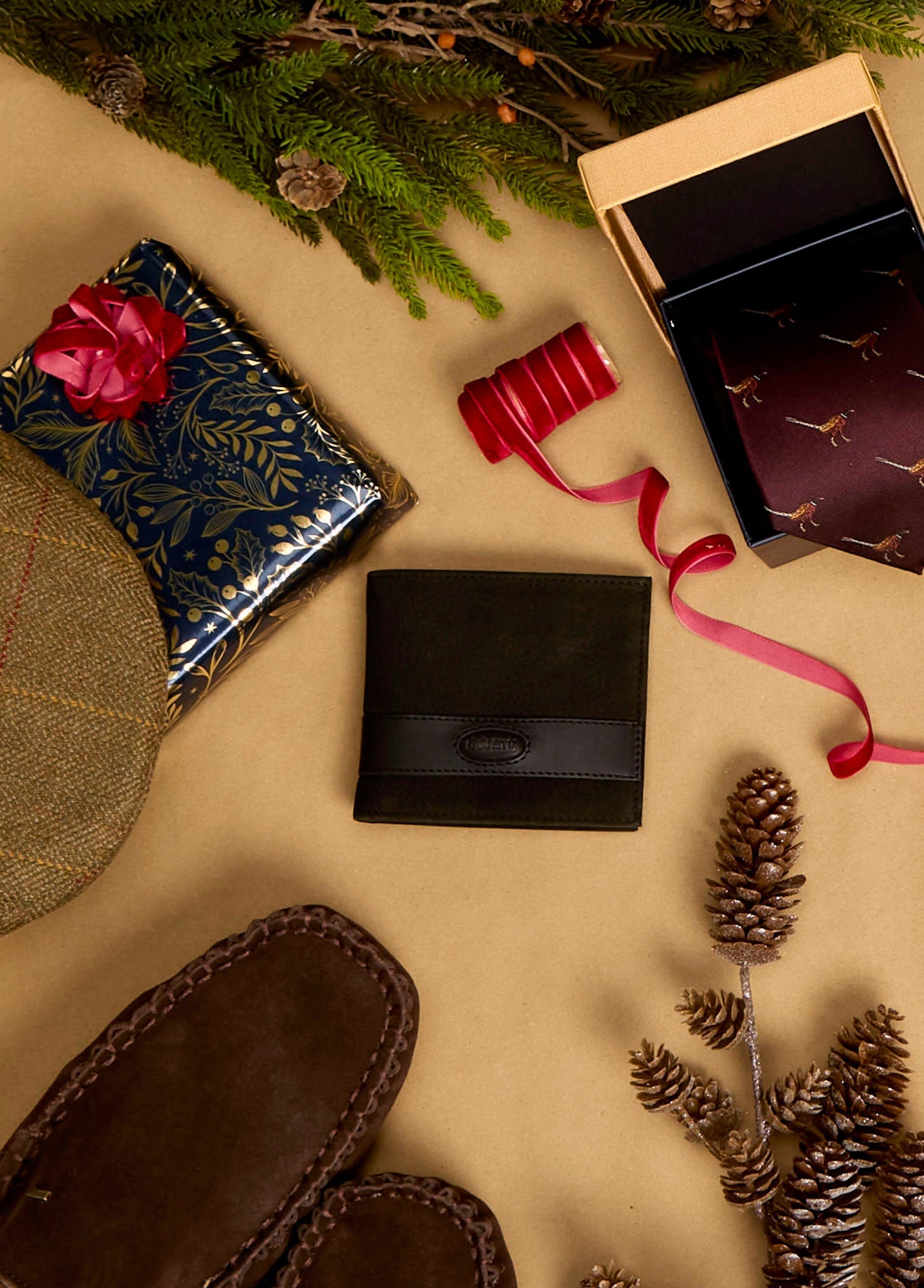 Men's leather wallet made in smooth and crushed leather with a water resistant finish. Features cedit card slots and money pouch pockets and is available in a choice of colours.