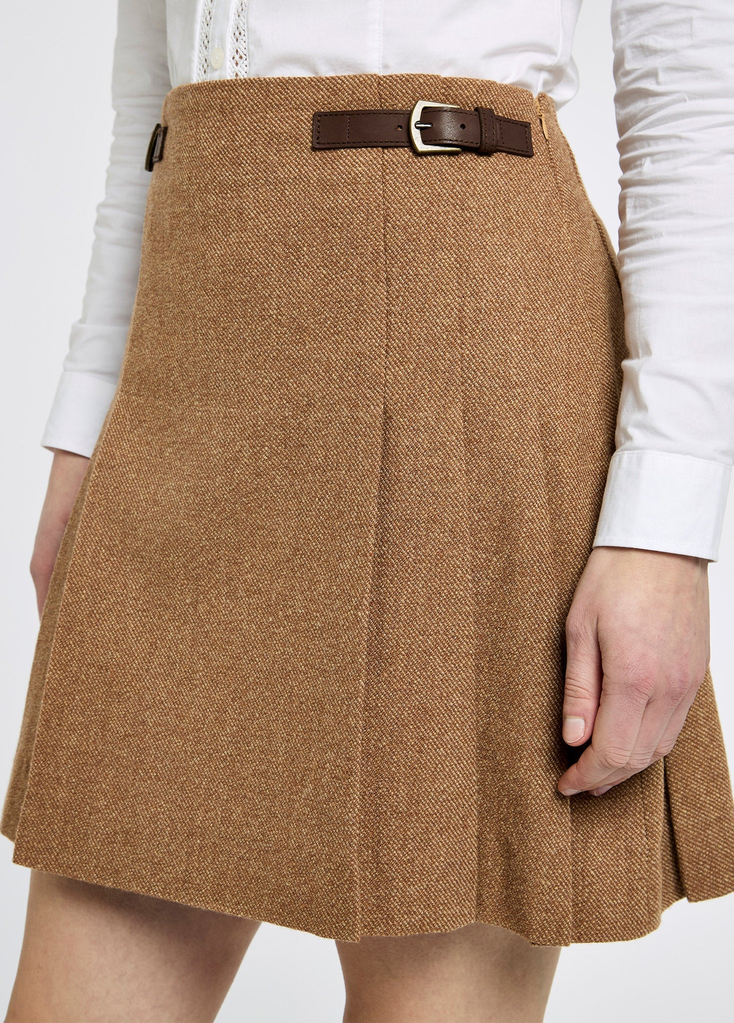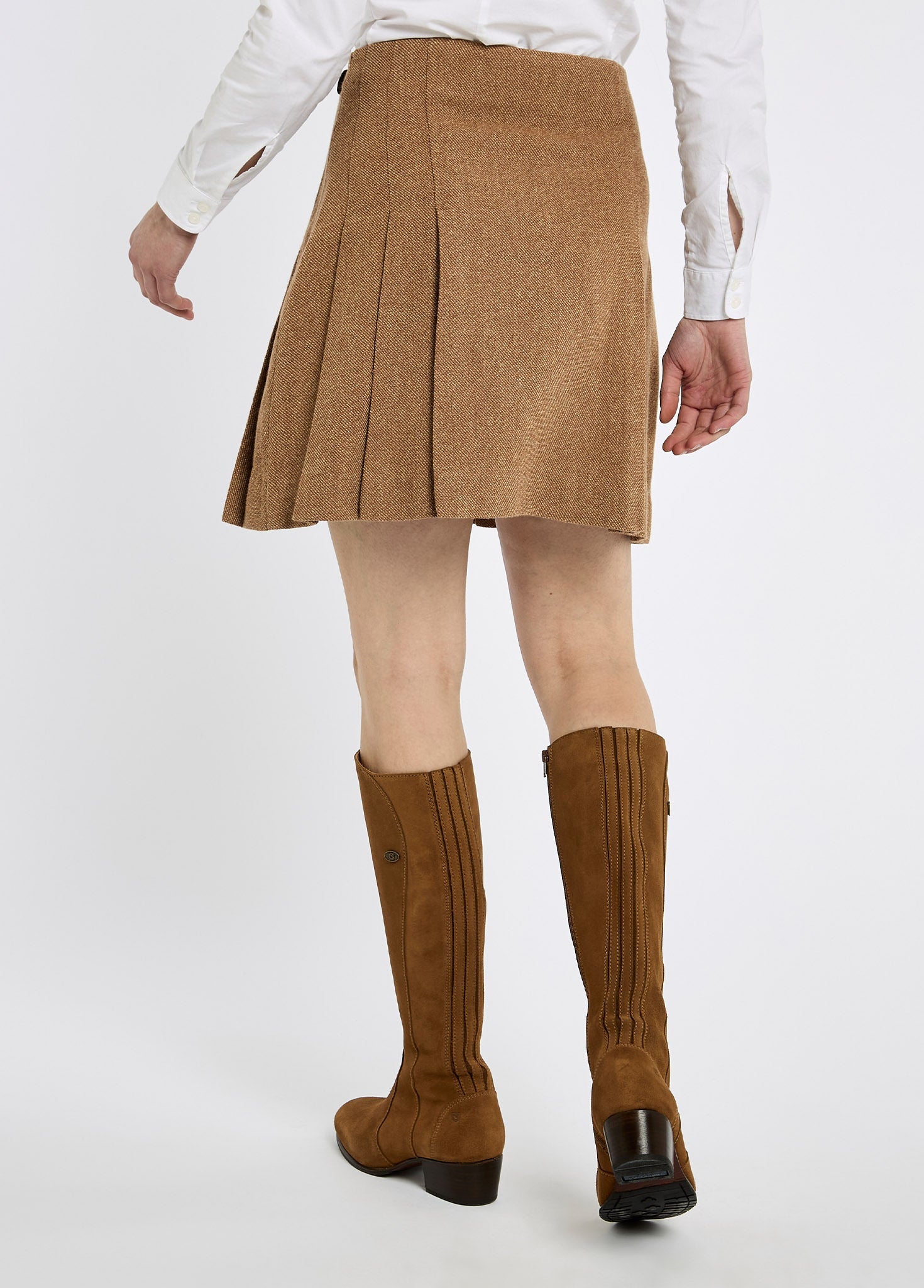 Made in a bespoke Dubarry tweed, this soft tweed skirt is fully lined and has beautifully stitched-down pleated panels. Dress up or down with knitwear or cotton shirting allowing the neat side buckles in real leather to add a touch of finesse.