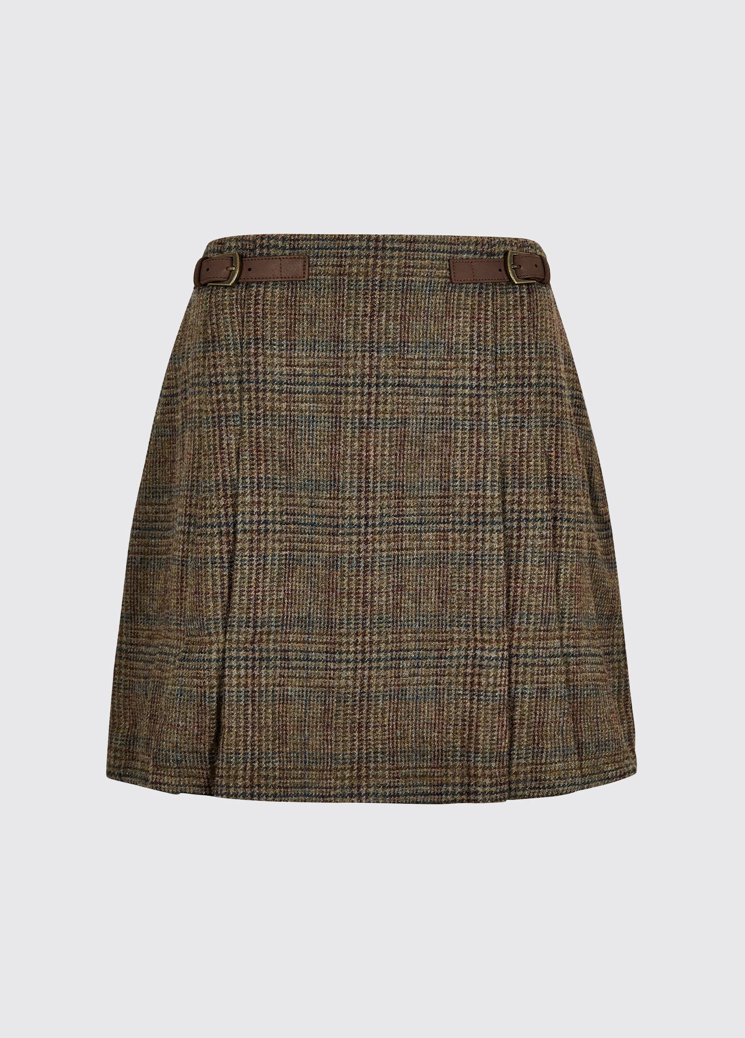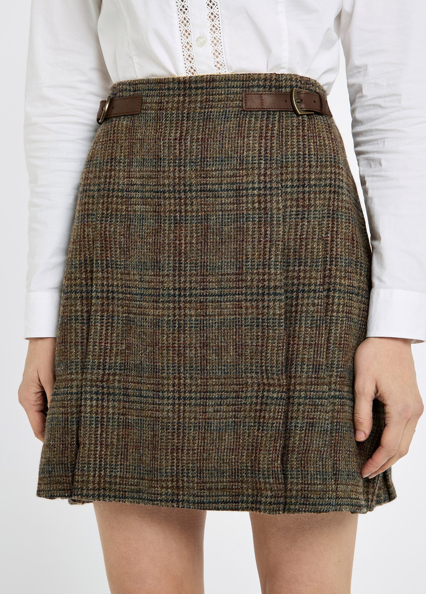 Made in a bespoke Dubarry tweed, this soft tweed skirt is fully lined and has beautifully stitched-down pleated panels. Dress up or down with knitwear or cotton shirting allowing the neat side buckles in real leather to add a touch of finesse.