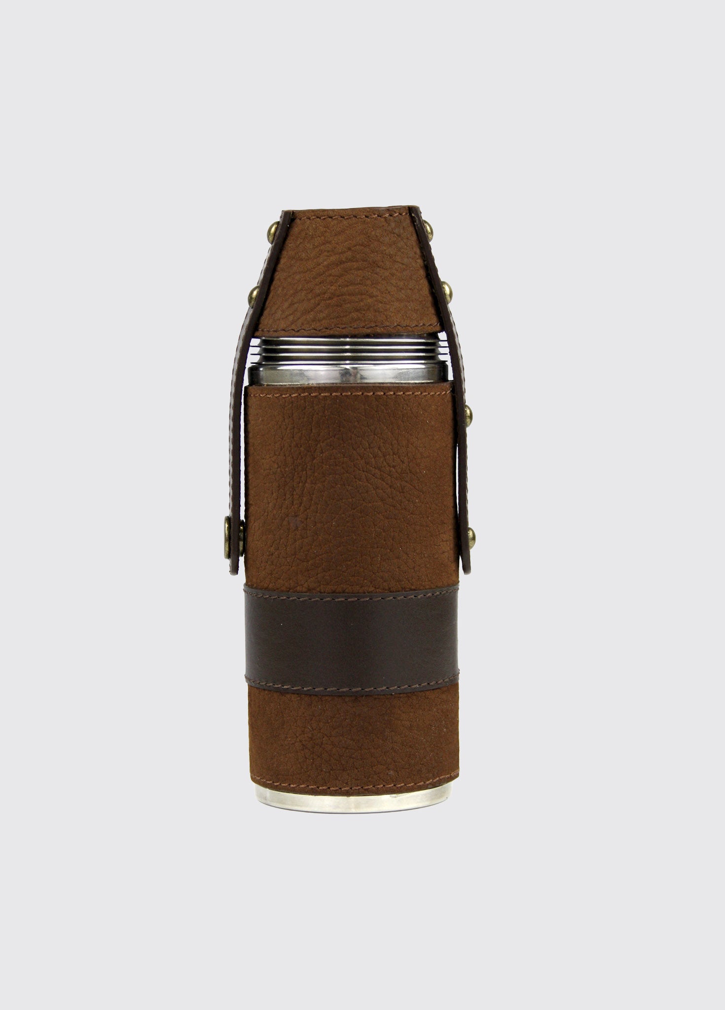 - Leather-bound stainless steel hunter flask with screw cap
