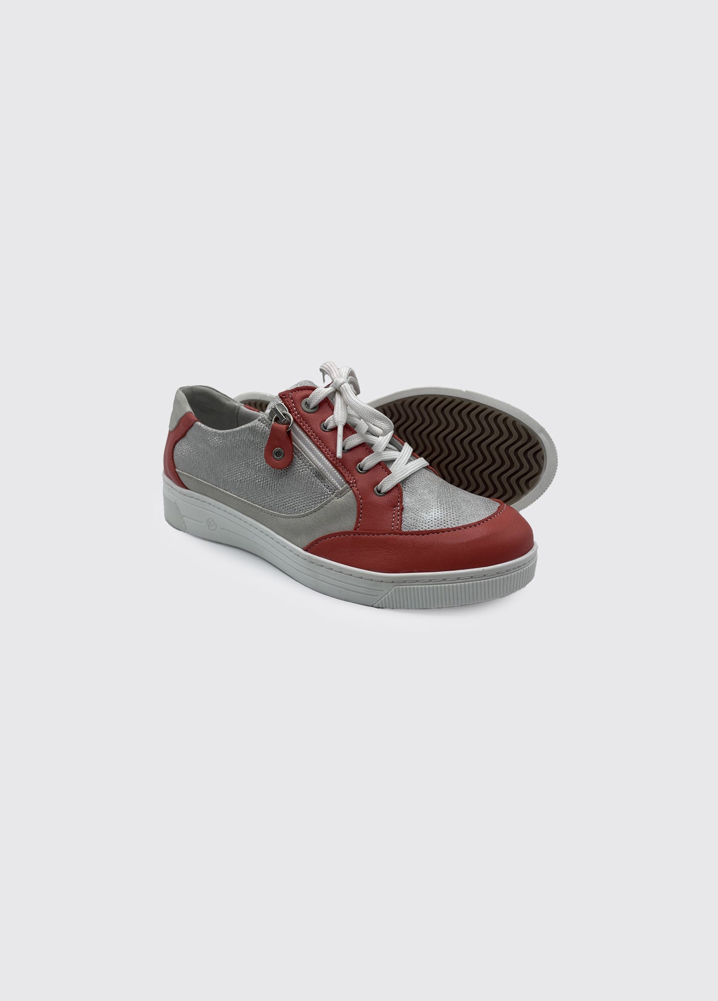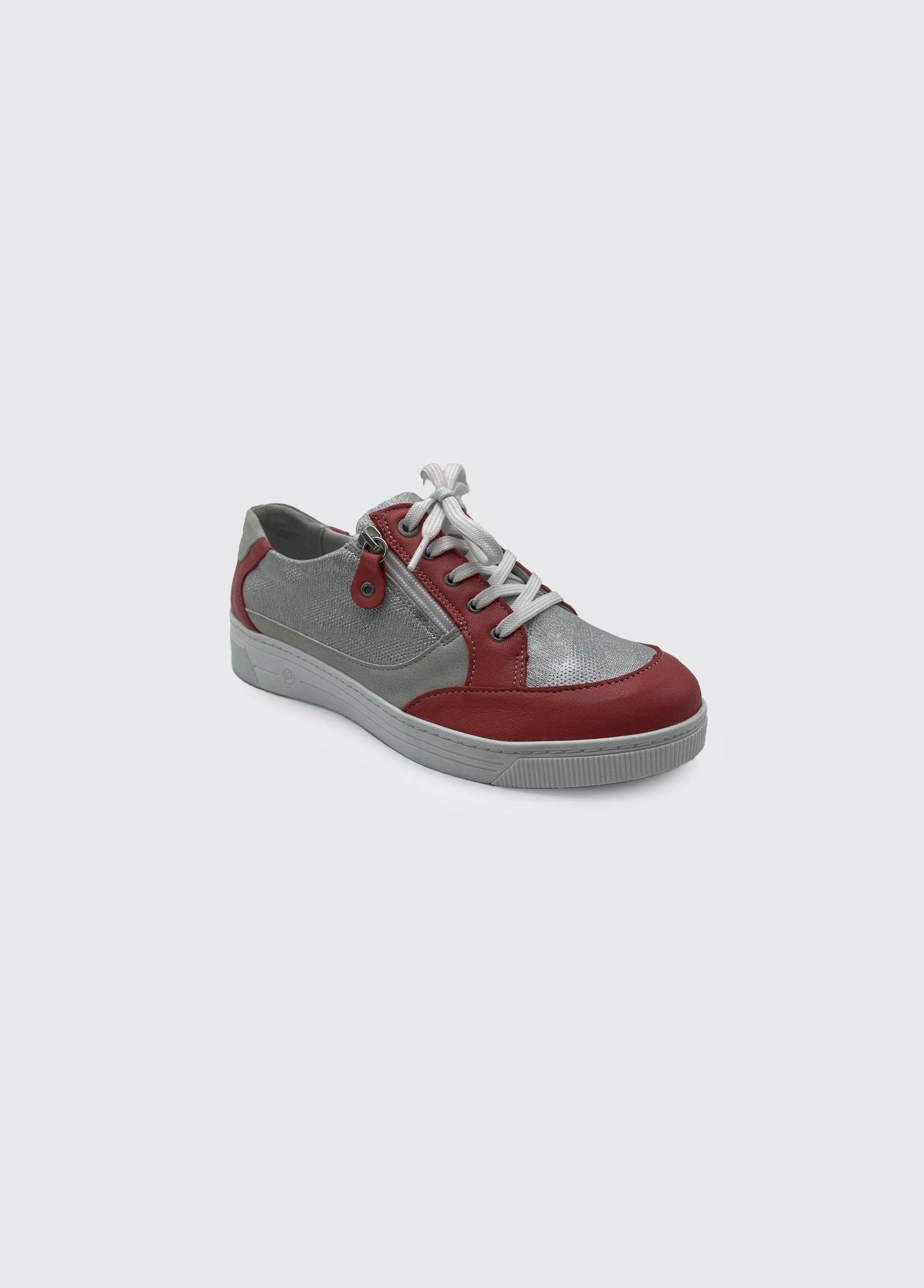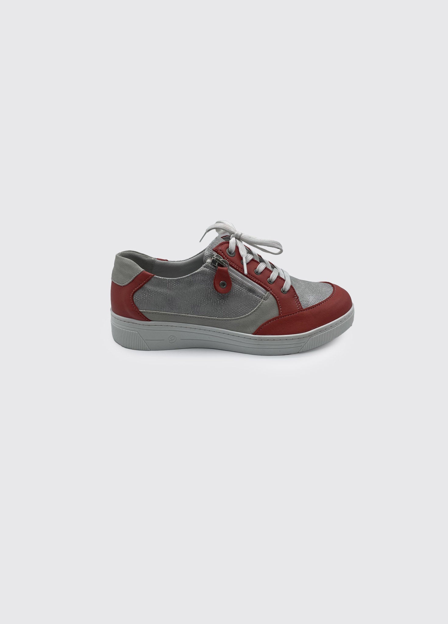Womens trainer style comfort shoe with side zip for easy foot access.