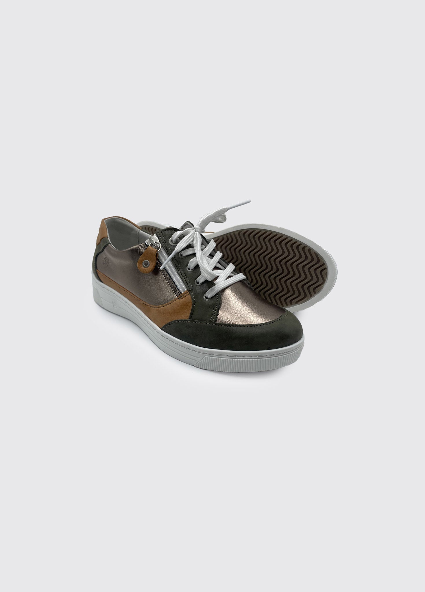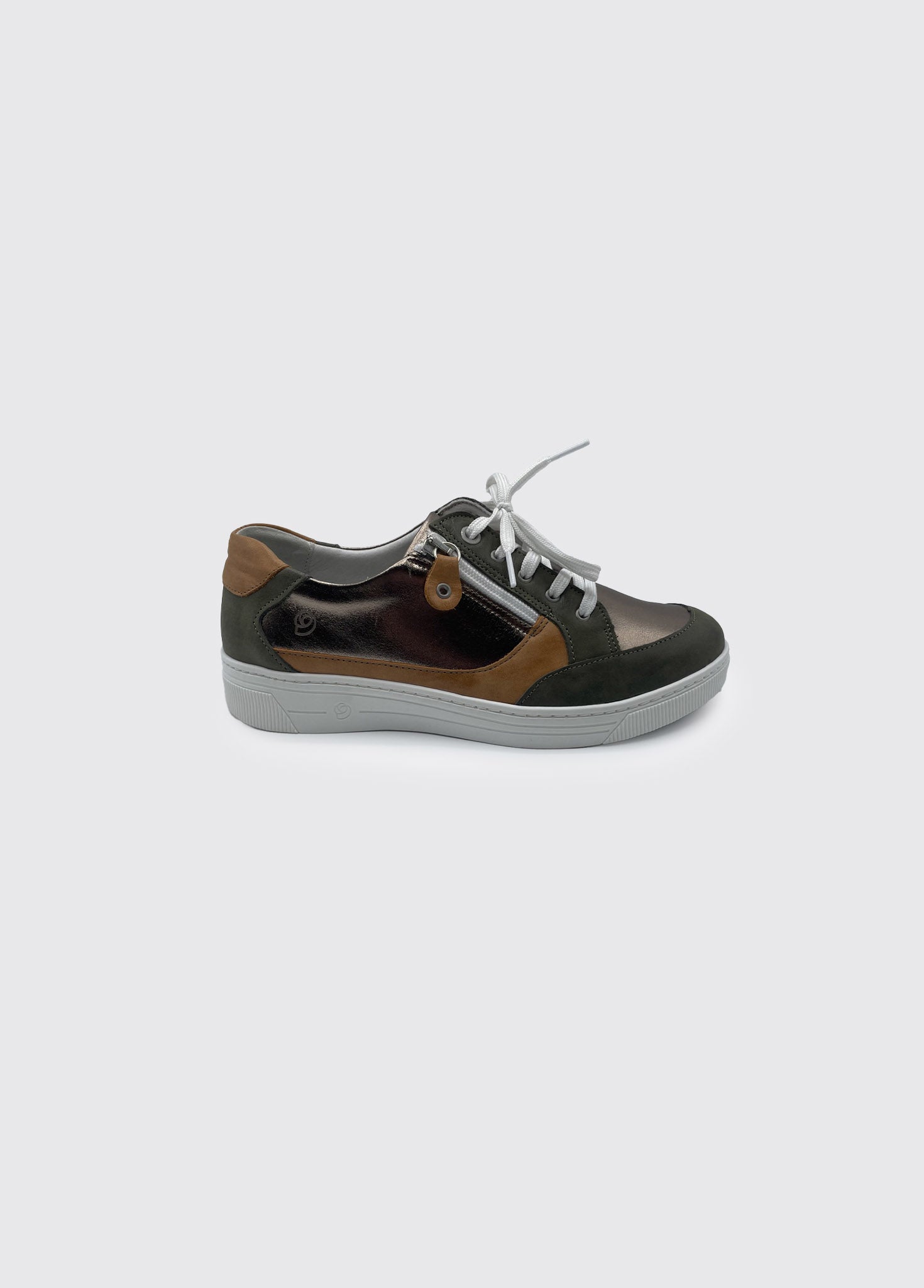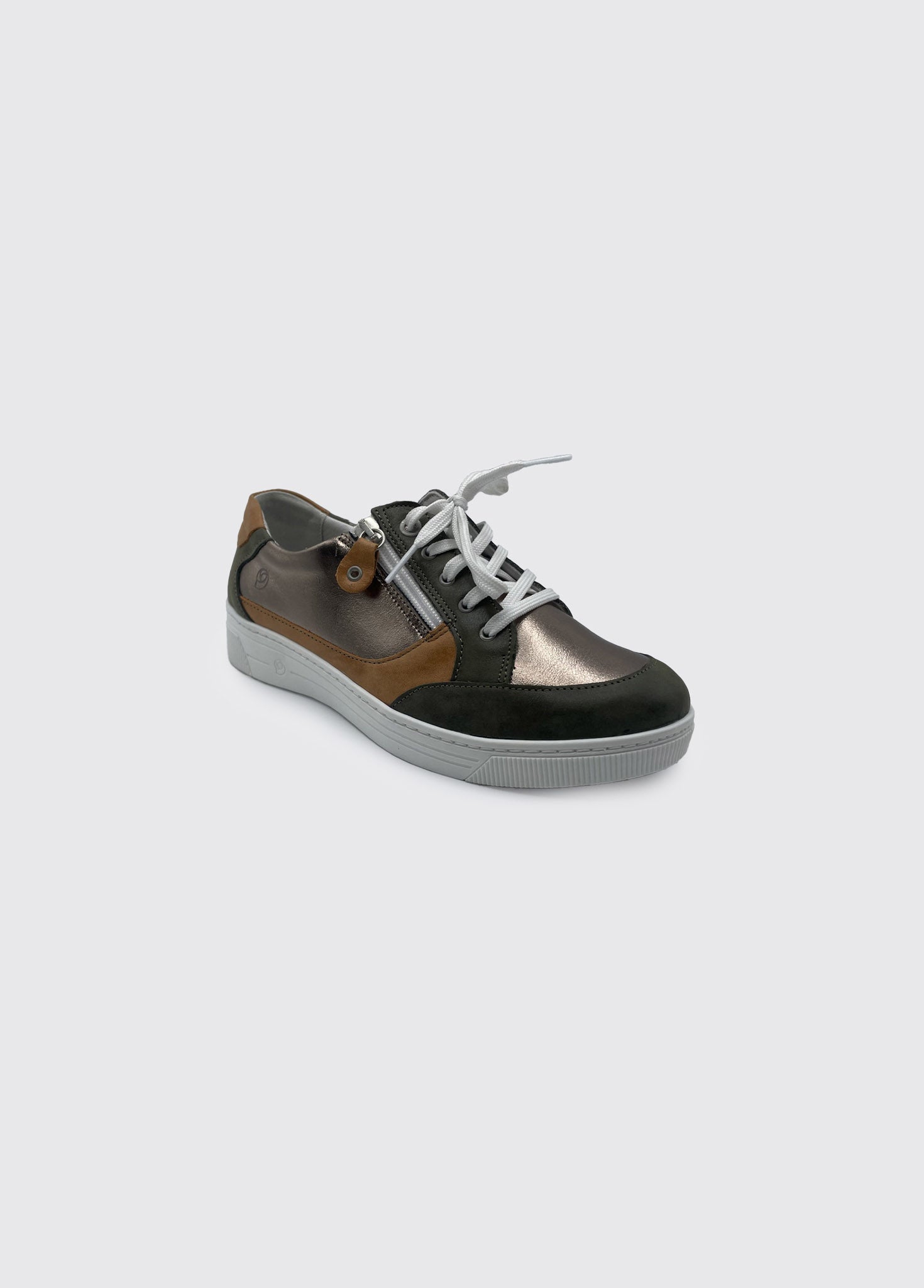 Womens trainer style comfort shoe with side zip for easy foot access.