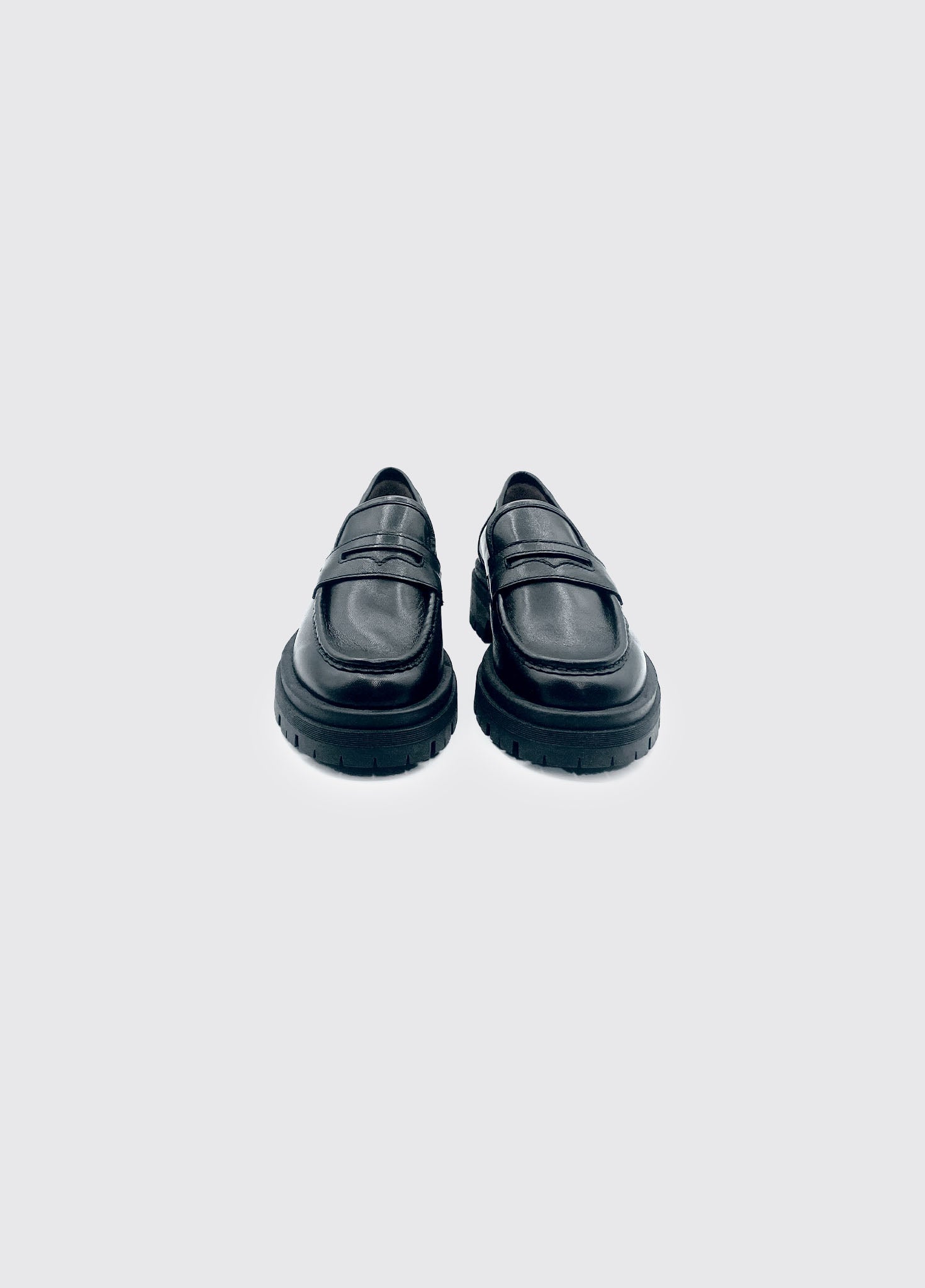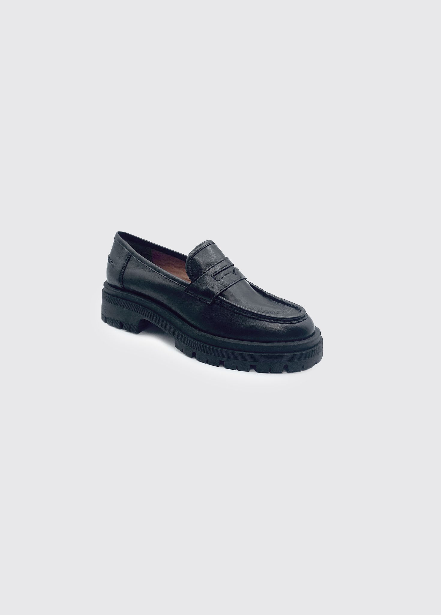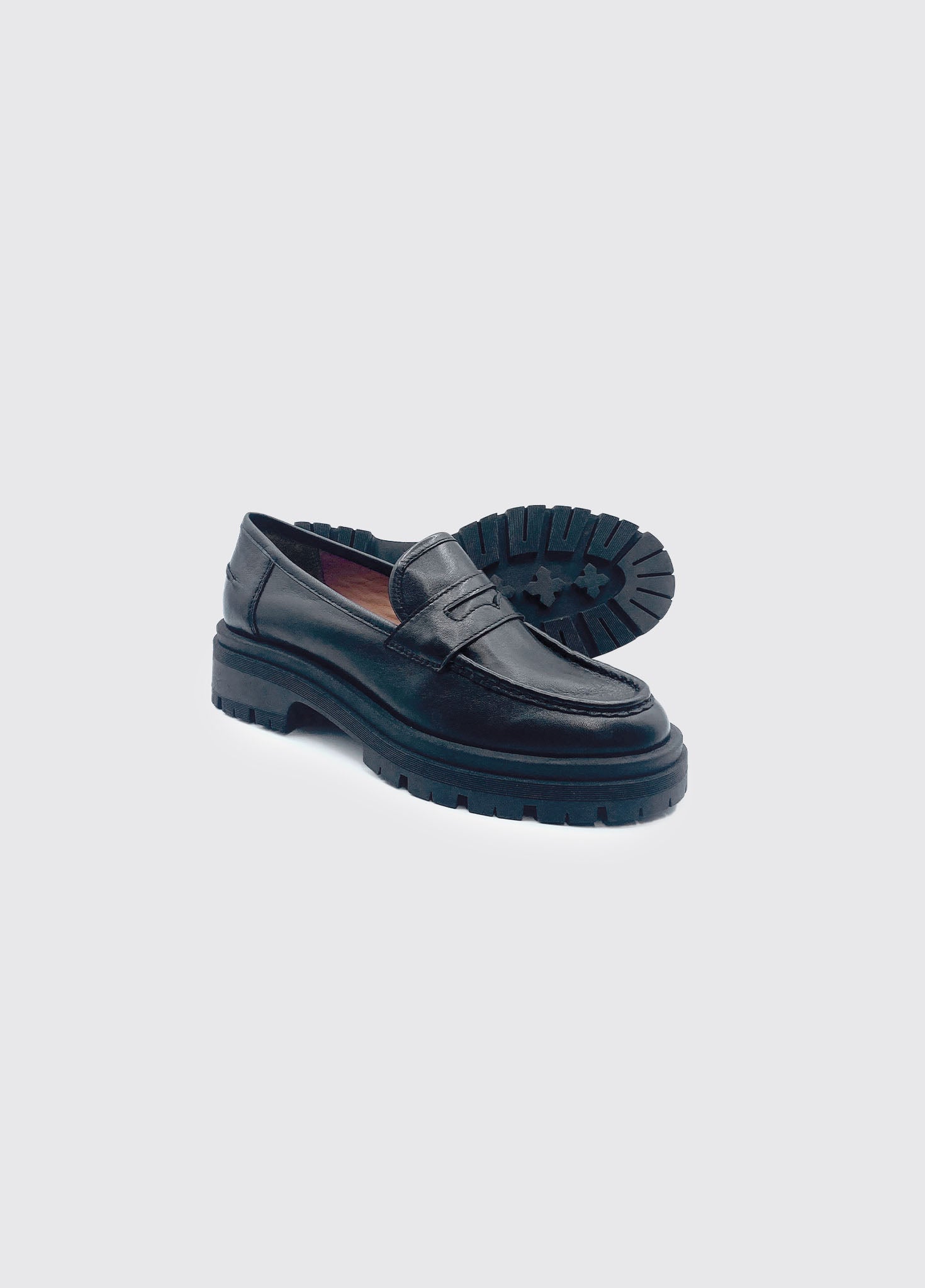 The Kensington Girls Loafer in Black combines timeless design with practical features. Crafted with a premium leather upper, this slip-on loafer showcases a traditional penny loafer bar for a classic look. Its chunky TR rubber outsole offers flexibility and durability, ensuring comfort and reliable traction for everyday wear. Ideal for young wearers seeking both style and functionality.