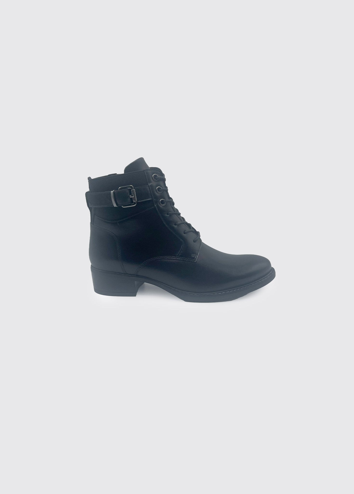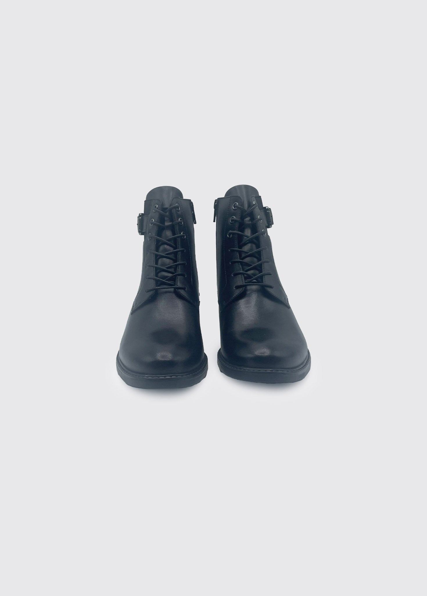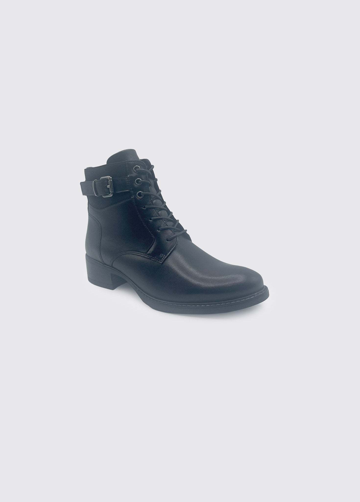 The Case Short Heeled Boot pairs classic design with practical functionality. Built with a smooth leather upper and reinforced by a durable TR sole, this boot handles everyday demands with ease. The low wedge block heel provides stable, comfortable support, while the dual-closure system featuring a 7 eye-tie lace-up and side zip allows you to adjust the fit to your preference. A side strap with buckle hardware completes the look with subtle detail. This chestnut boot is a reliable choice for those who value both style and performance.
