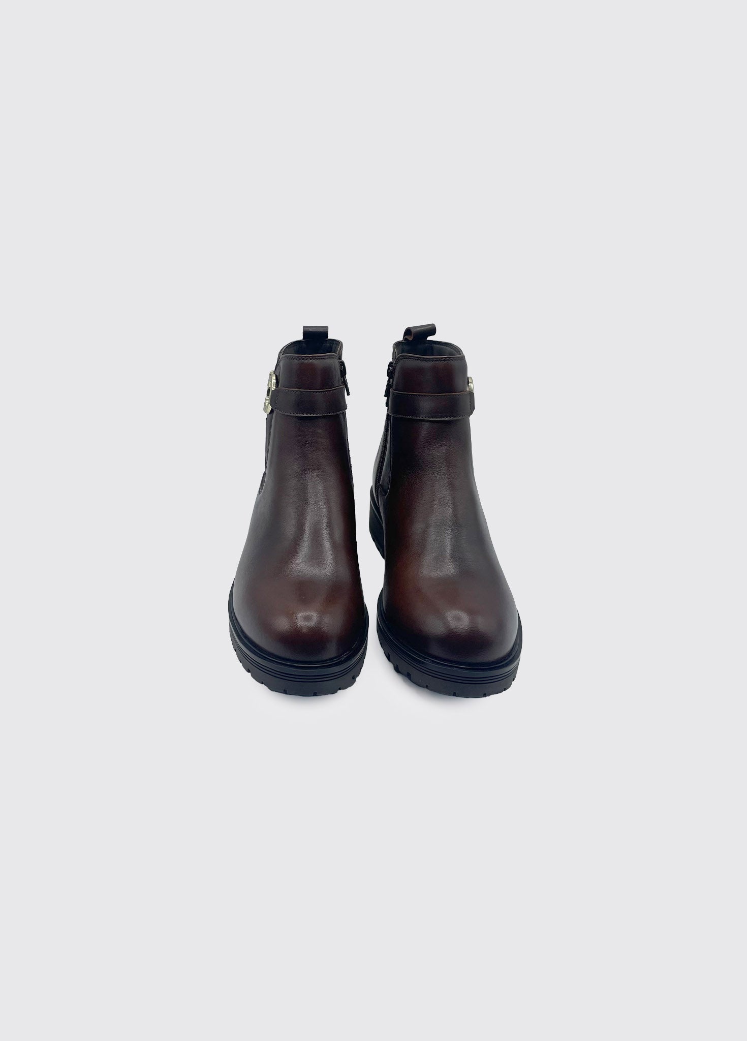 The Cub Ankle Boot combines functional design with understated elegance. A quality leather upper forms the foundation, supported by a hardwearing TR sole built to endure daily wear. Elasticated side gussets provide adaptive comfort and ease of movement, whilst the side zip closure offers straightforward fastening. The heel finger pull simplifies dressing, and decorative side strap hardware contributes a refined touch. In rich brown, this boot proves a dependable companion for varied weather and occasions throughout the year.