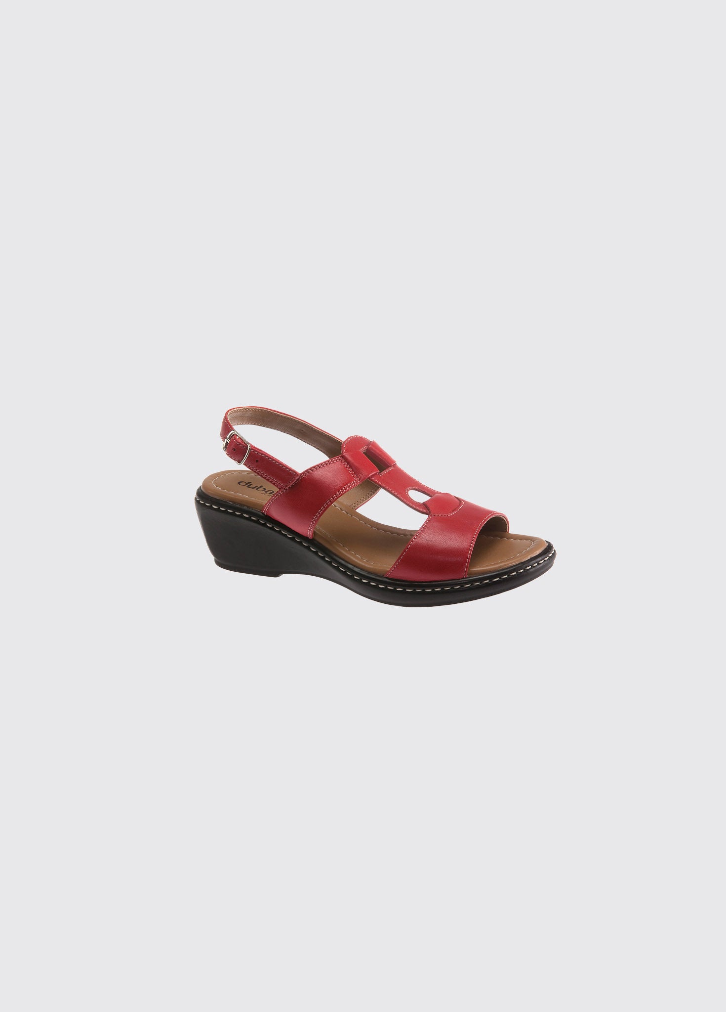 Ladies sandal on Medium high wedge with buckle for secure fitting