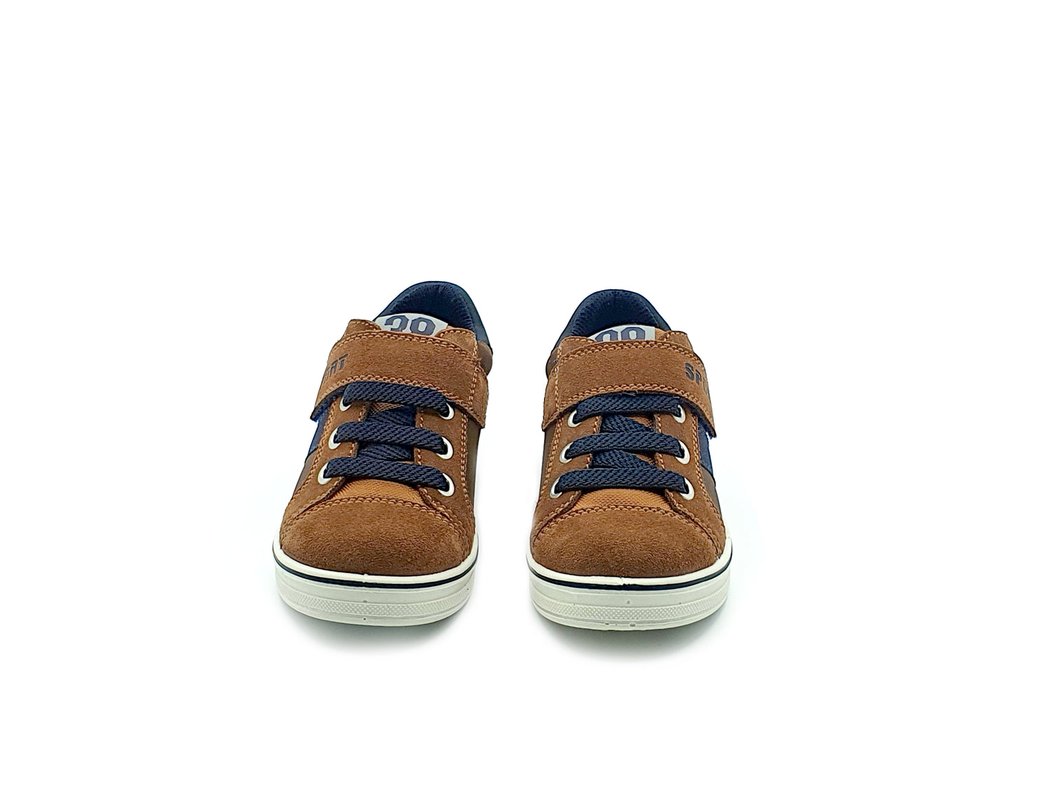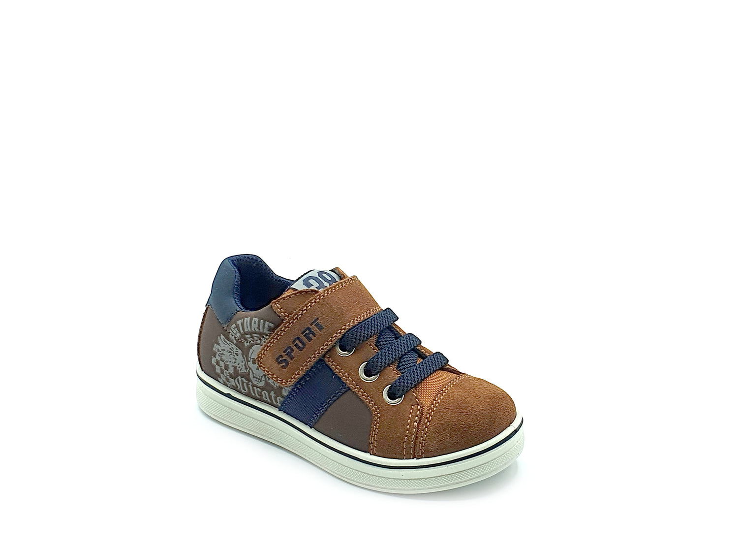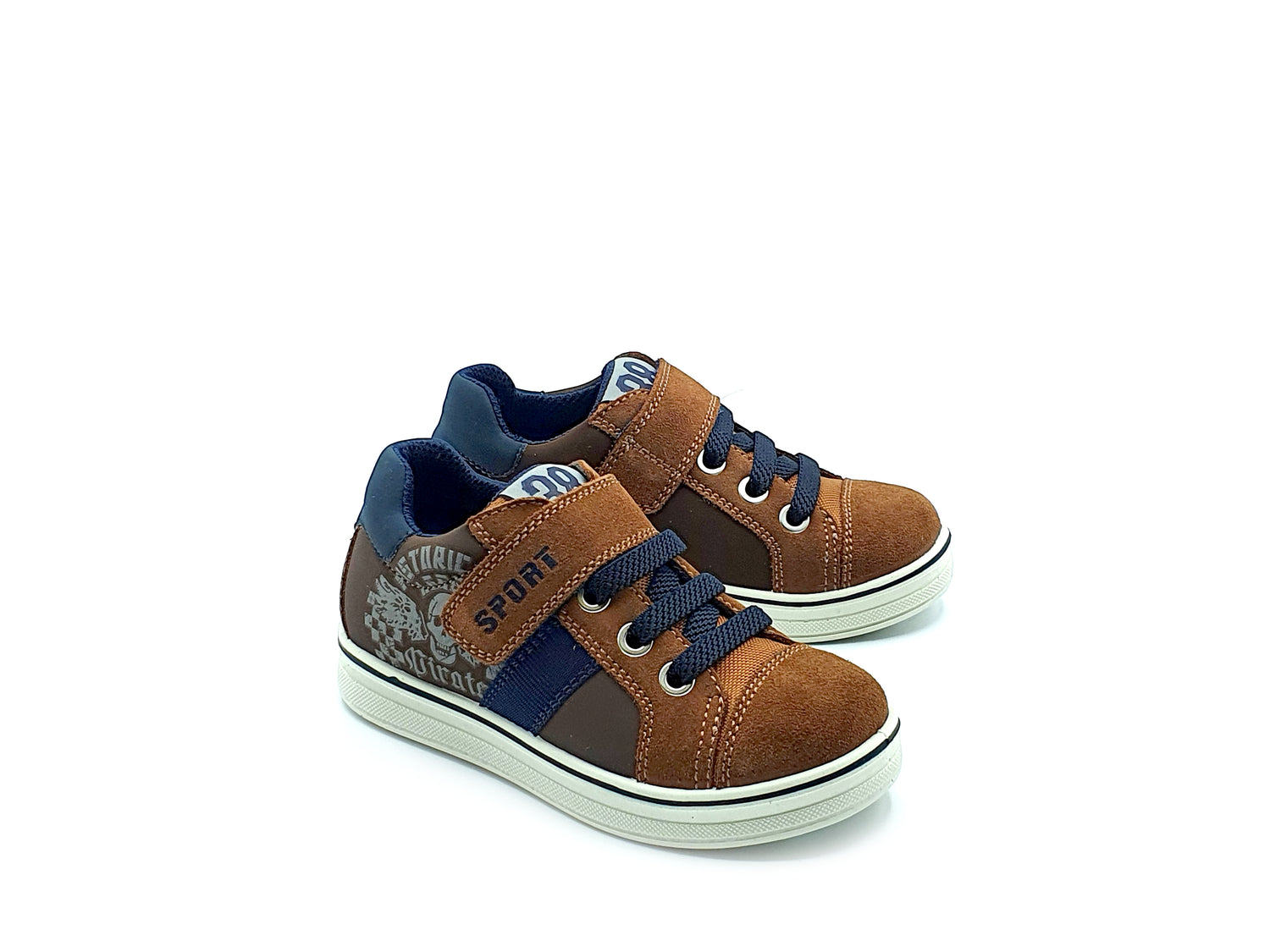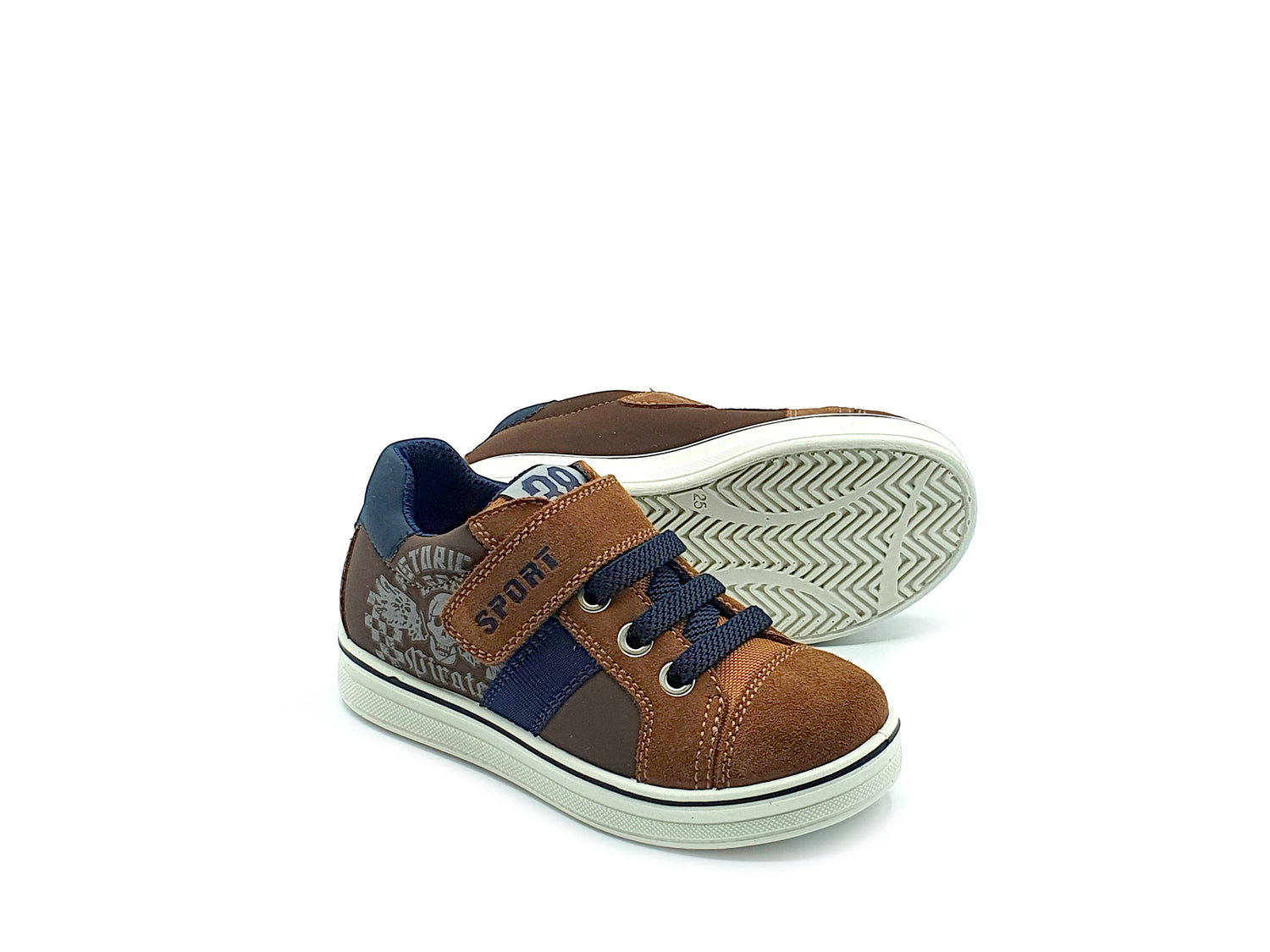 The Lance Boy's Trainer in Tan features a Velcro strap combined with a 3 eye-tie lace-up closure, a Tex lining, and a lightweight, flexible sole. These trainers are designed to be waterproof and breathable for comfortable wear.