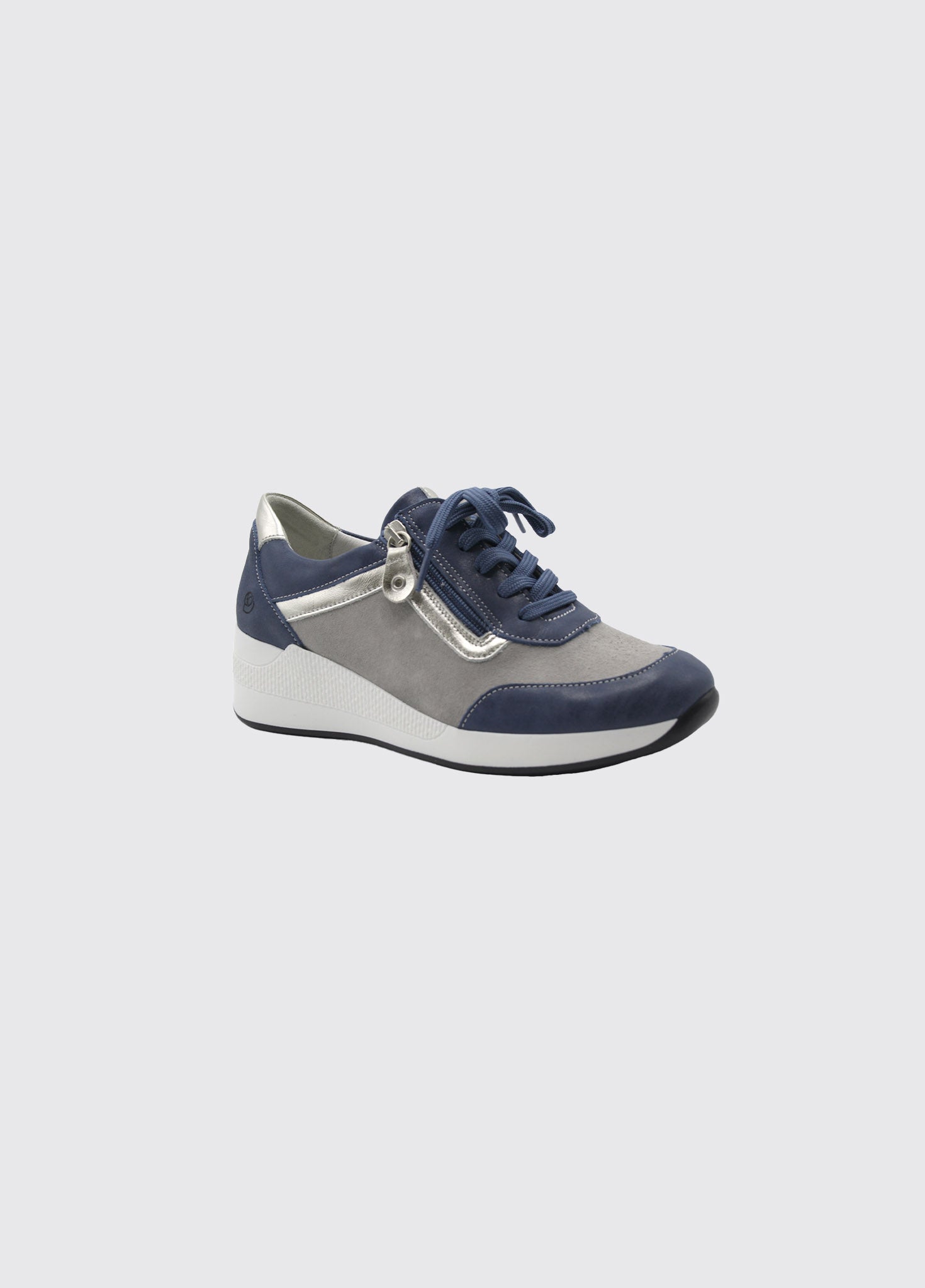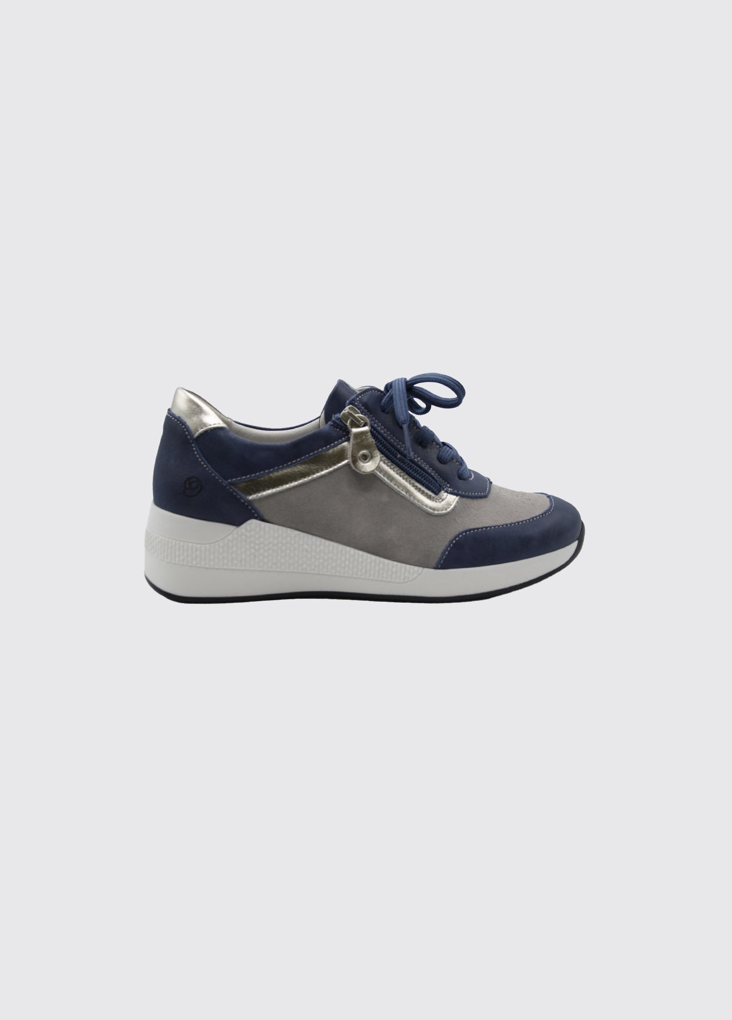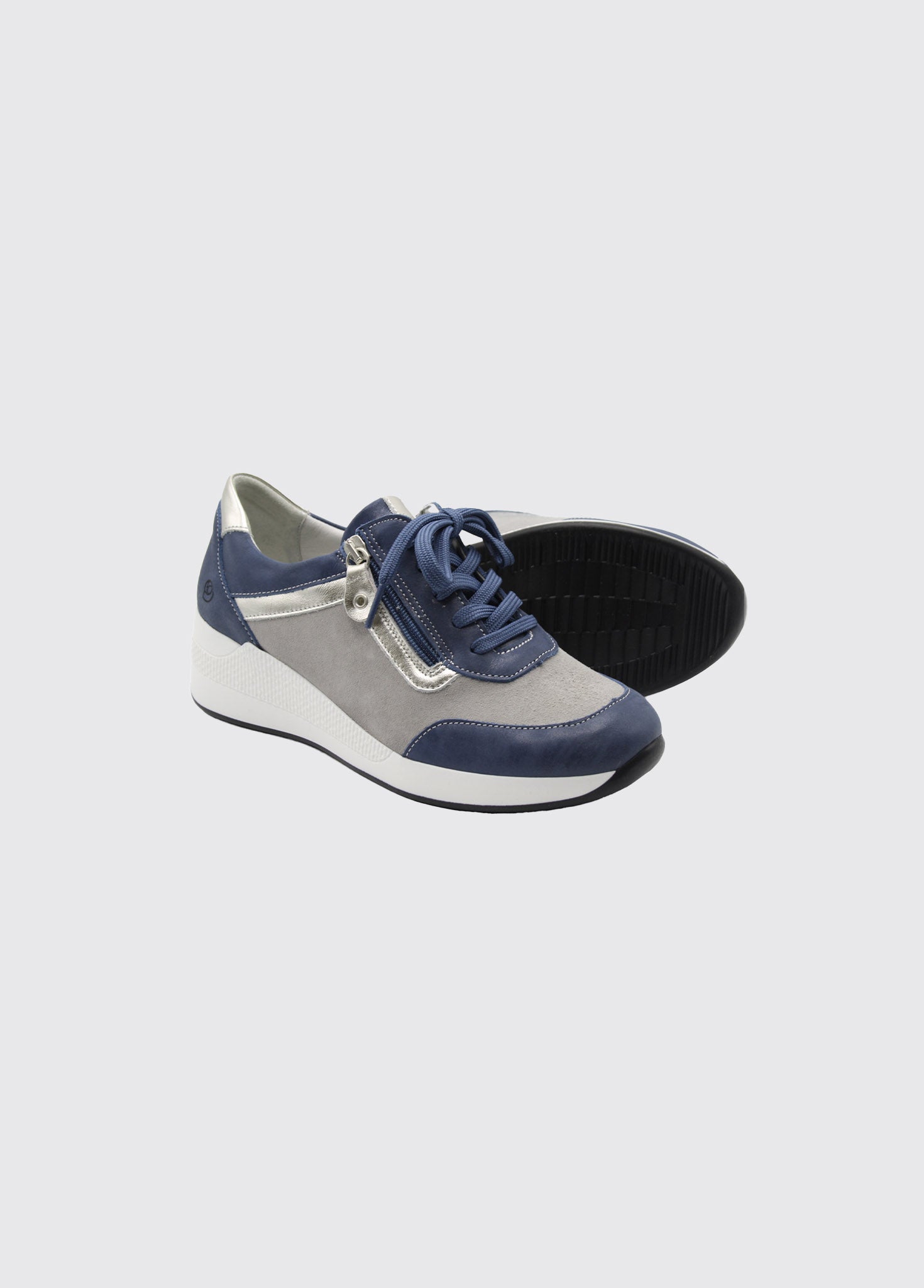 Womens trainer style comfort shoe with side zip for easy foot access.