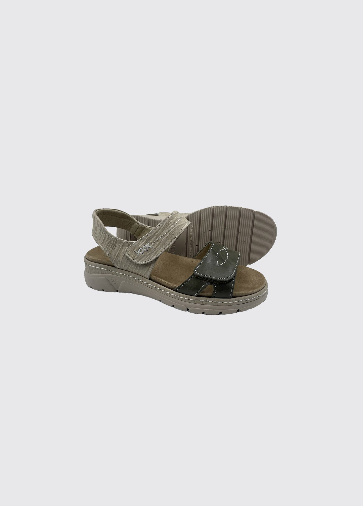 - Sandal with Velcro closure on back strap for secure foot comfort