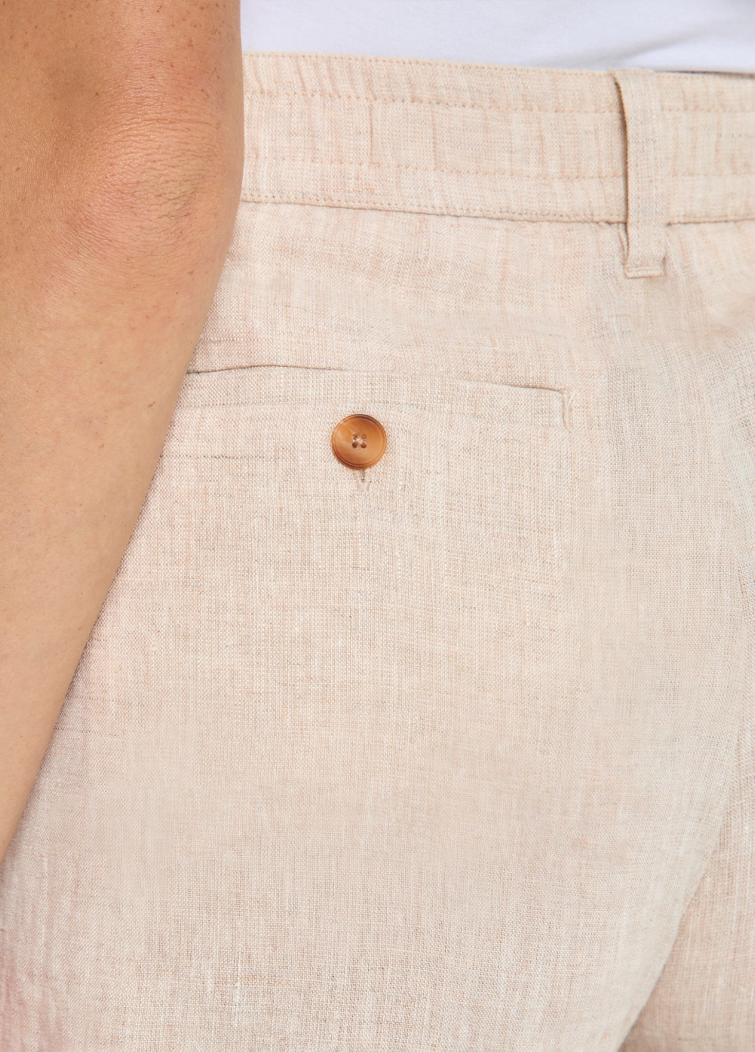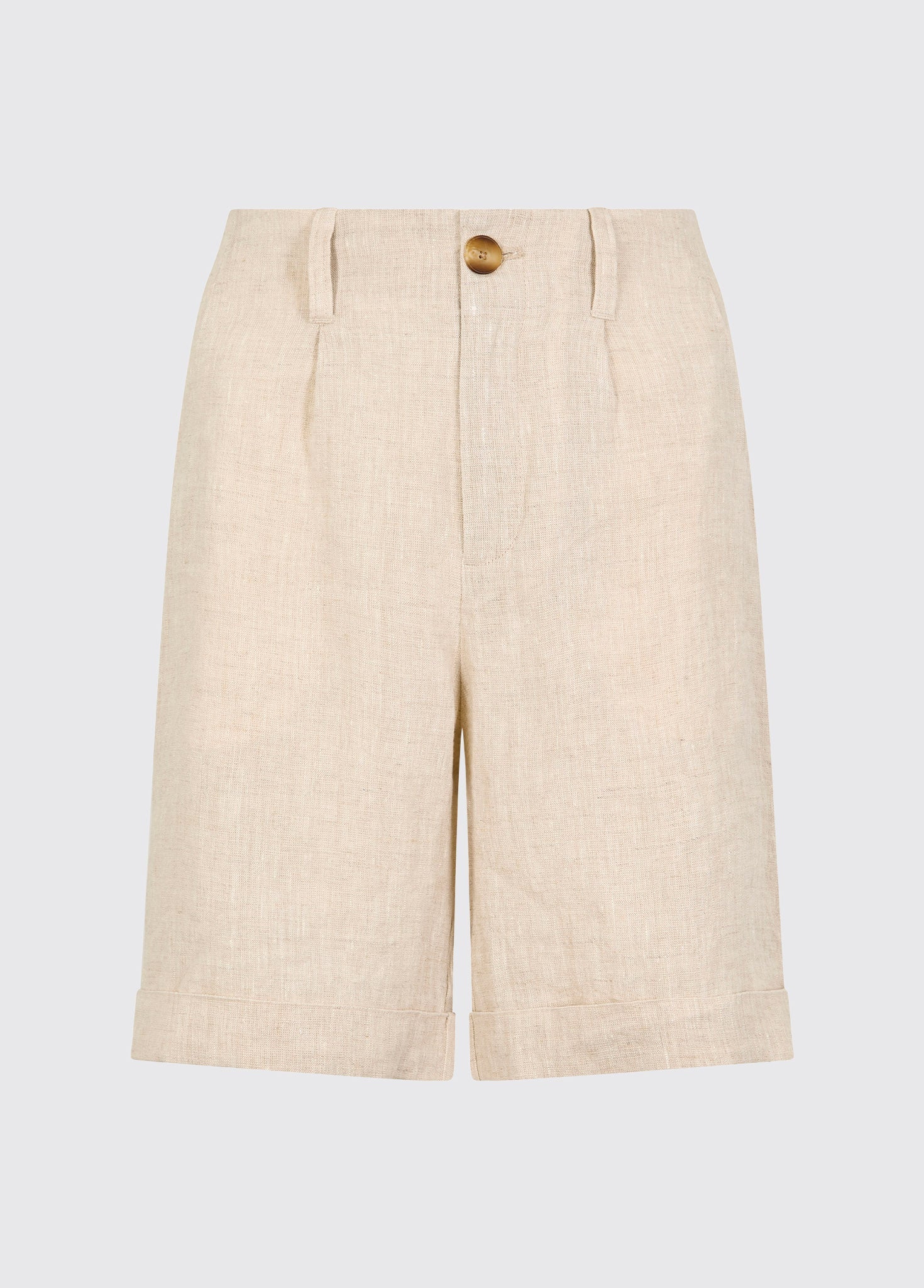 A quick fire way to summer sophistication is our Maryland linen shorts. Ever so soft with a garment wash finish, the have an elasticated back which gives discreet comfort without compromising the tailored style. Match with a loose linen shirt or a classic t-shirt for a paired back outfit or complete a tailored look with a Dubarry Avonlea jacket. Garden parties, summer office days or holiday evenings will the perfect setting for these classy shorts however you chose to style them.