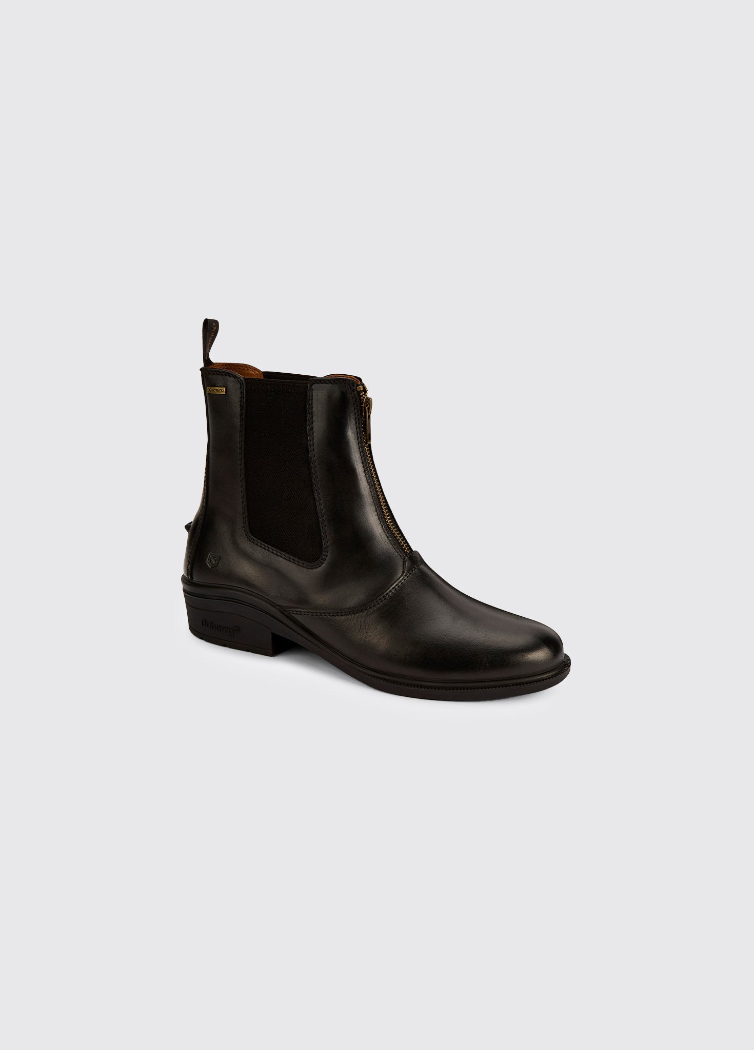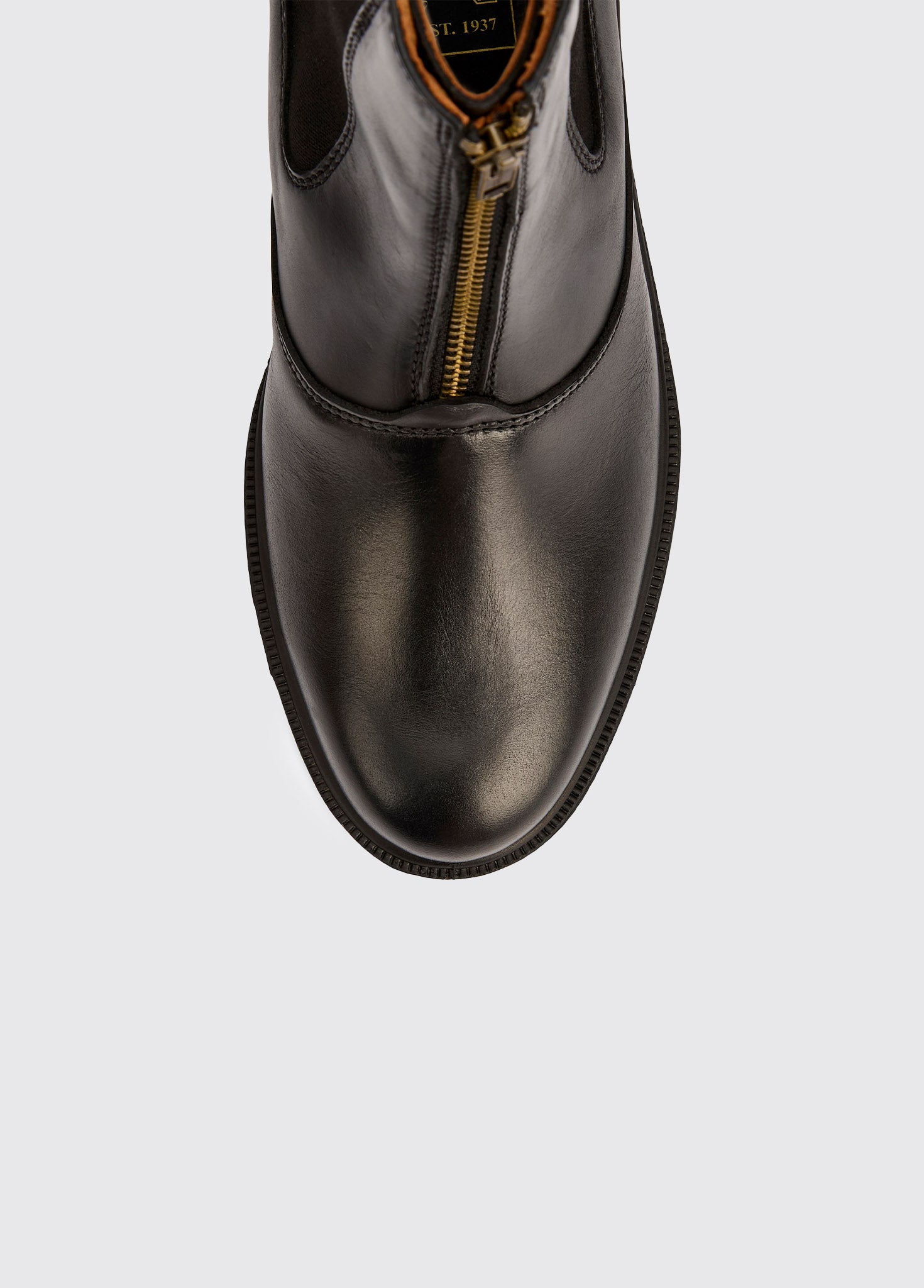 A true front-zip paddock boot built on our new stirrup-safe sole unit. Our combination of DryFast-DrySoft™ leathers and GORE-TEX lining mean that they are fully waterproof and breathable and packed with practical features such as a spur keeper at the heel, and optional removable footbed. Wear with the Dubarry half chaps for everyday in-saddle performance or just take them for a stroll.