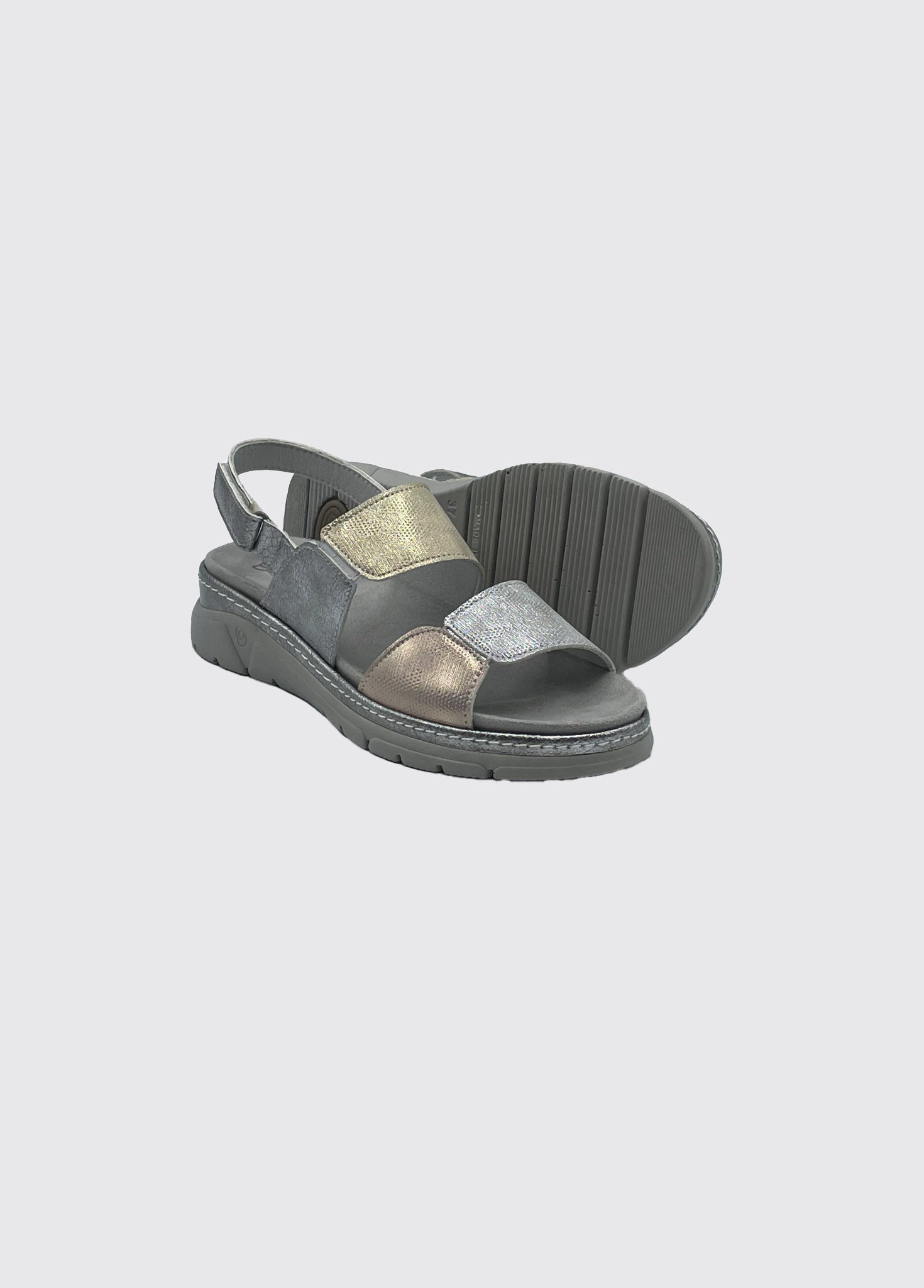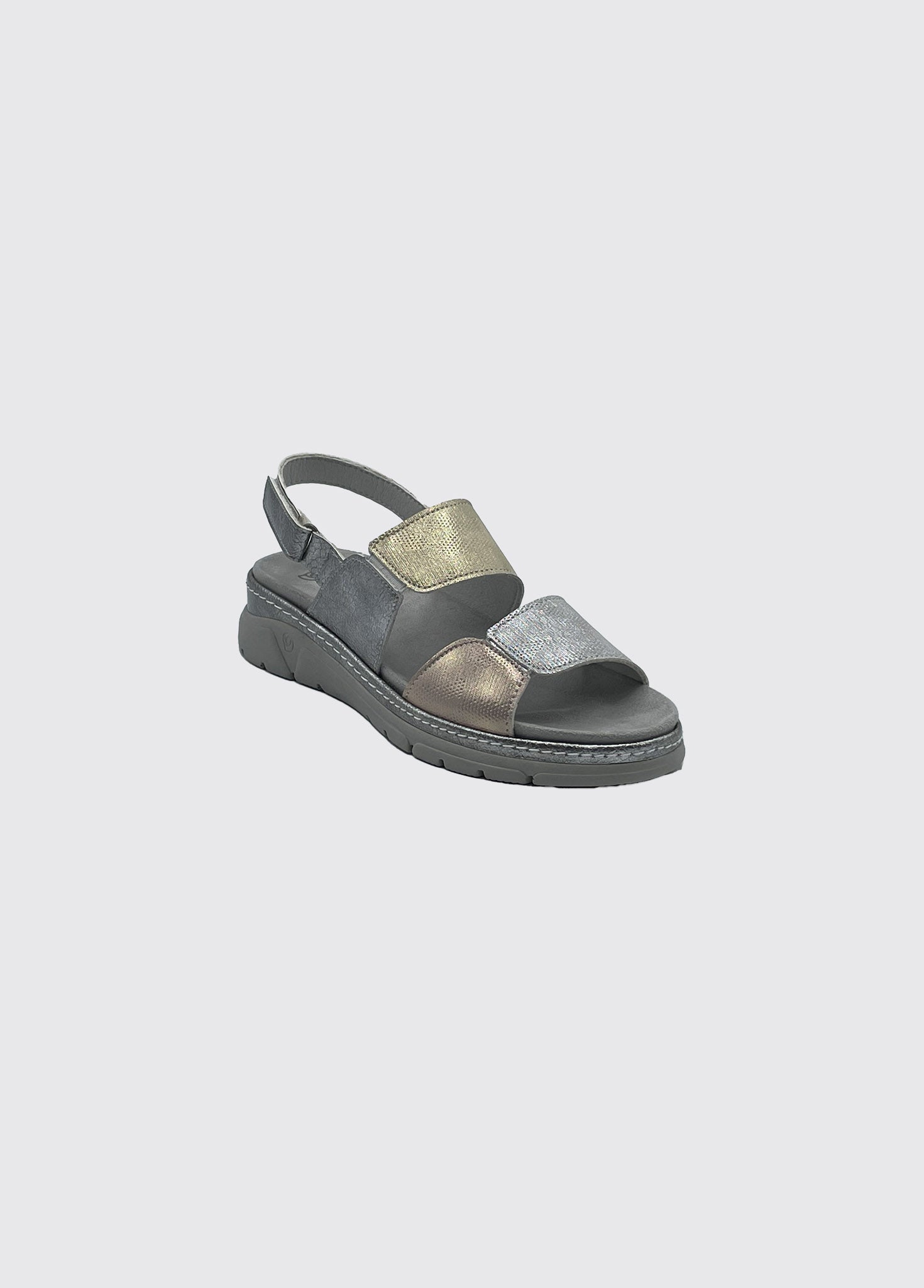 Sandal with buckle close for secure foot comfort. Comfortable comfort shoe.