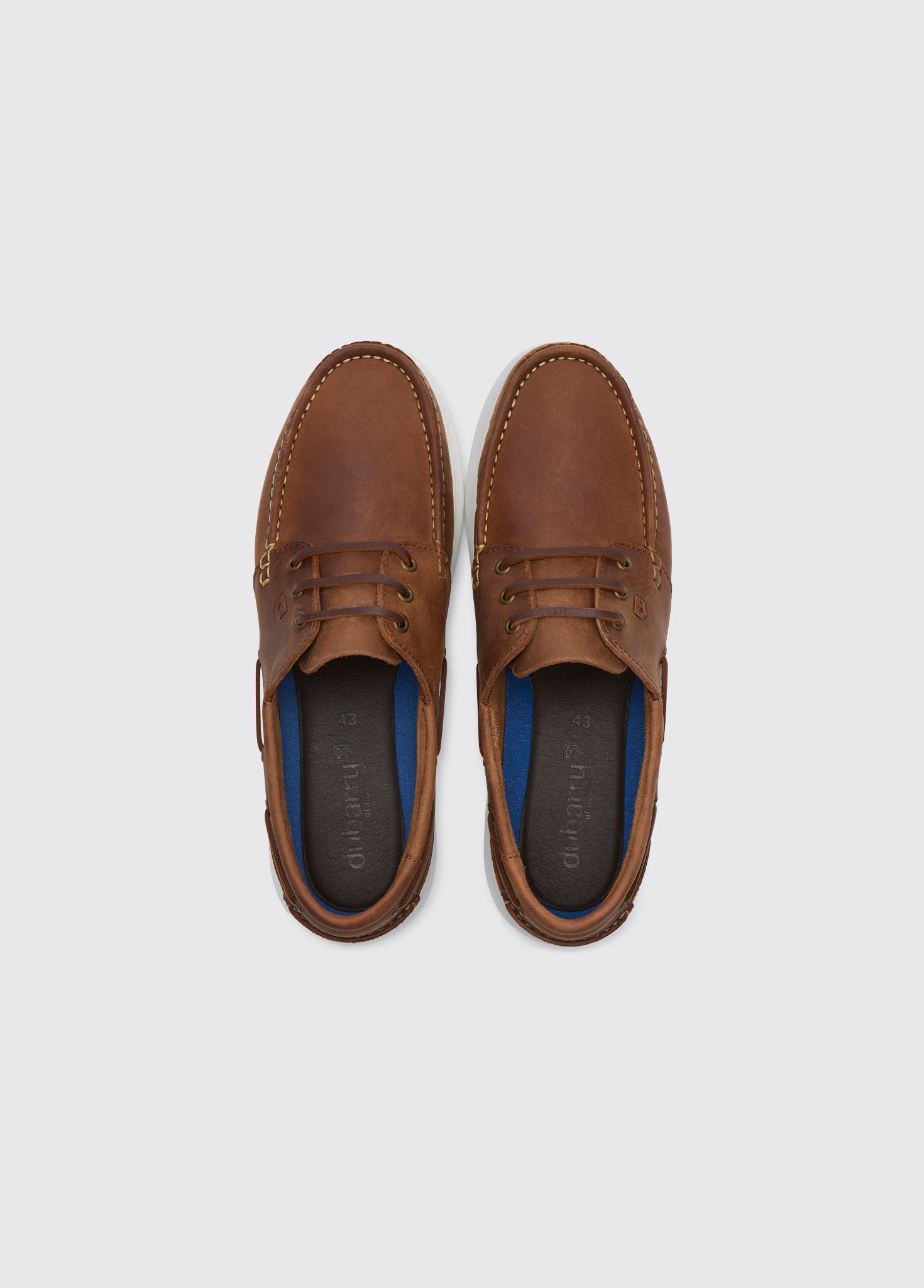 Our water resistant, leather Tavira Deck shoes are a three eye-tie moccasin constructed with a dubarrylite™ EVA sole unit. They are exceptionally lightweight, flexible, shock absorbing and durable and have a unique bottom pattern that eliminates aquaplaning on wet surfaces. In addition to their incredibly light construction they have with full length removable cushioned footbed which gives particular underfoot comfort, making them a fantastic option for long days on sea or land. With colour options available style these to suit your summer at sea or land.